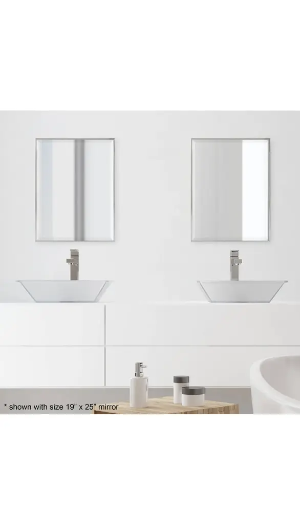 Using a mirror to dress up a part of your home is a simple choice with the Rhodes rectangular wall mirror by Kate and Laurel. It is a beautiful addition to any wall and an essential element in your home decor. An easy way to revamp a space, the large 24.75 x 36.75-inch rectangle frame has the perfect dimensions to add a stylish statement to a hallway, bedroom or living room. You could even place two on adjacent walls for opening up space in any smaller room. The substantial size makes it a natural selection for your bathroom either as a tasteful piece of wall art or a practical vanity mirror. The sleek, minimalist frame creates a modern feel and a stylish look in a contemporary design and blends with other styles well, so it is sure to fit perfectly in a kitchen, hallway or dining room too. The frame is made of a sturdy polystyrene material and has a slim profile. The beveled mirror surface is 24 x 36 inches, reflecting lots of light and brightening up any space.With an outside frame size of 24.75 x 36.75 inches, the shape and size of the Kate and Laurel Rhodes Mirror are perfect to put over a dresser or any piece of furniture you want to enhance. It fits nicely over a vanity too with plenty of reflection space as the mirror surface is 24 inches x 36 inchesAn artistic display on its own, this mirror is a beautiful part of any home decorating scheme. The modern frame adorns an inset beveled mirror that gives the illusion of even more light and depthHang it any way that works for your space. The 4 attached D-ring hangers allow for horizontal or vertical installation and easy hanging. All you need are two screws and the ability to measure the spaceThe sleek modern look of its design gives this mirror a gorgeous contemporary, minimalist feel - a style that goes with and complements most home decorAn attractively framed mirror is the affordable way to decorate your wall while bringing light and space into a room