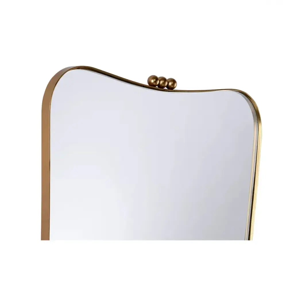Bring a touch of vintage charm to your home with our Rialto Mirror, finished in an elegant antique brass. Its sleek, softly contoured shape is accented by the subtle brass ball details, adding a touch of sophistication without overpowering the minimalist design. This versatile mirror can be hung either horizontally or vertically, making it the perfect addition to a variety of spaces, from bedrooms and bathrooms to living areas and hallways. The combination of the antique brass finish and timeless design ensures that this mirror will blend seamlessly with both modern and classic decor styles.