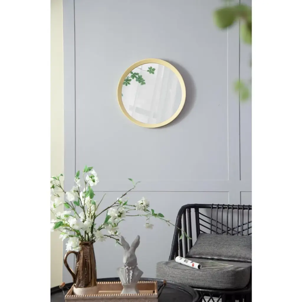 This 20-inch round mirror is set within a smoothly trimmed brown-toned mango wood frame, making it the perfect accent for a gallery wall, with light reflecting off the mirrored surface and illuminating the room.