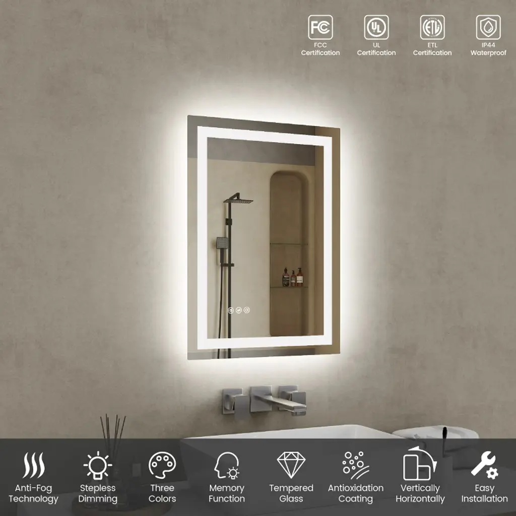 Ridstar 20 In. W X 28 In. H Clear Rectangular Bathroom Mirror With Led Lights