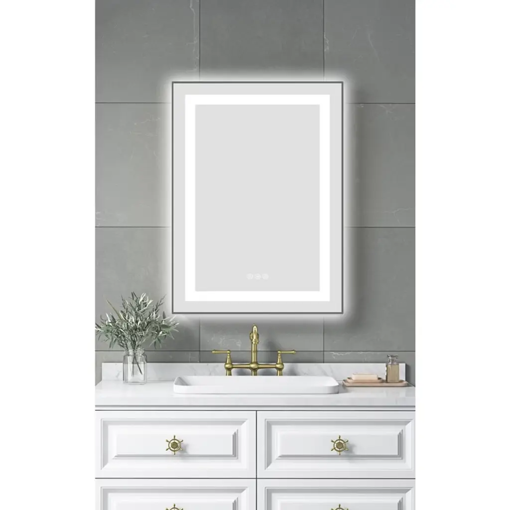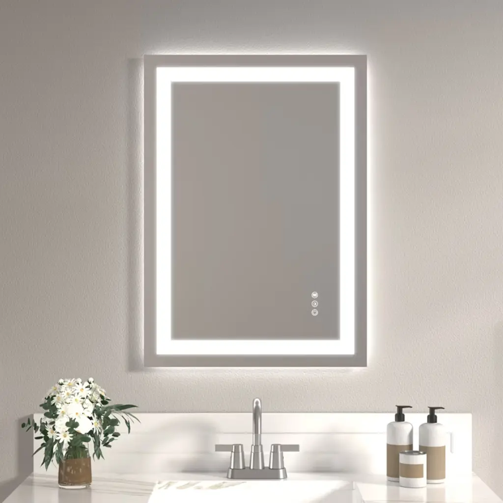 Ridstar 24 In. W X 32 In. H Gray Rectangular Bathroom Mirror With Led Lights