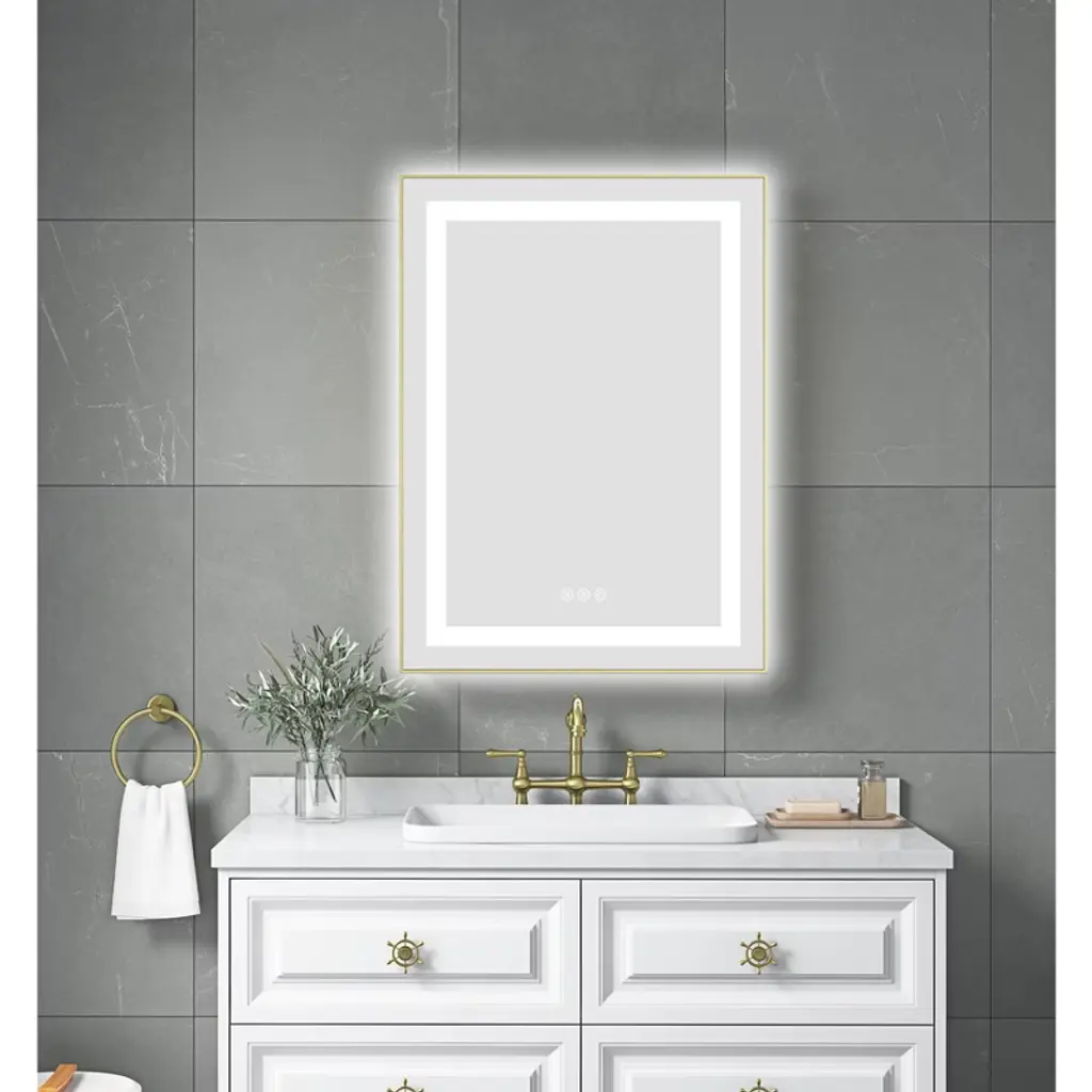 Ridstar 24 In. W X 32 In. H Yellow Rectangular Bathroom Mirror With Led Lights