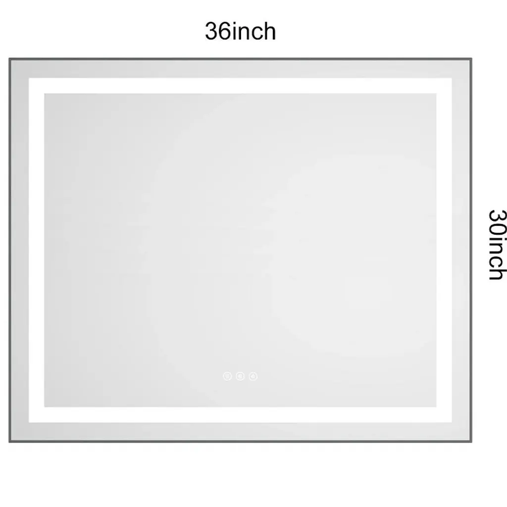 Ridstar 36 In. W X 30 In. H Gray Rectangular Bathroom Mirror With Led Lights