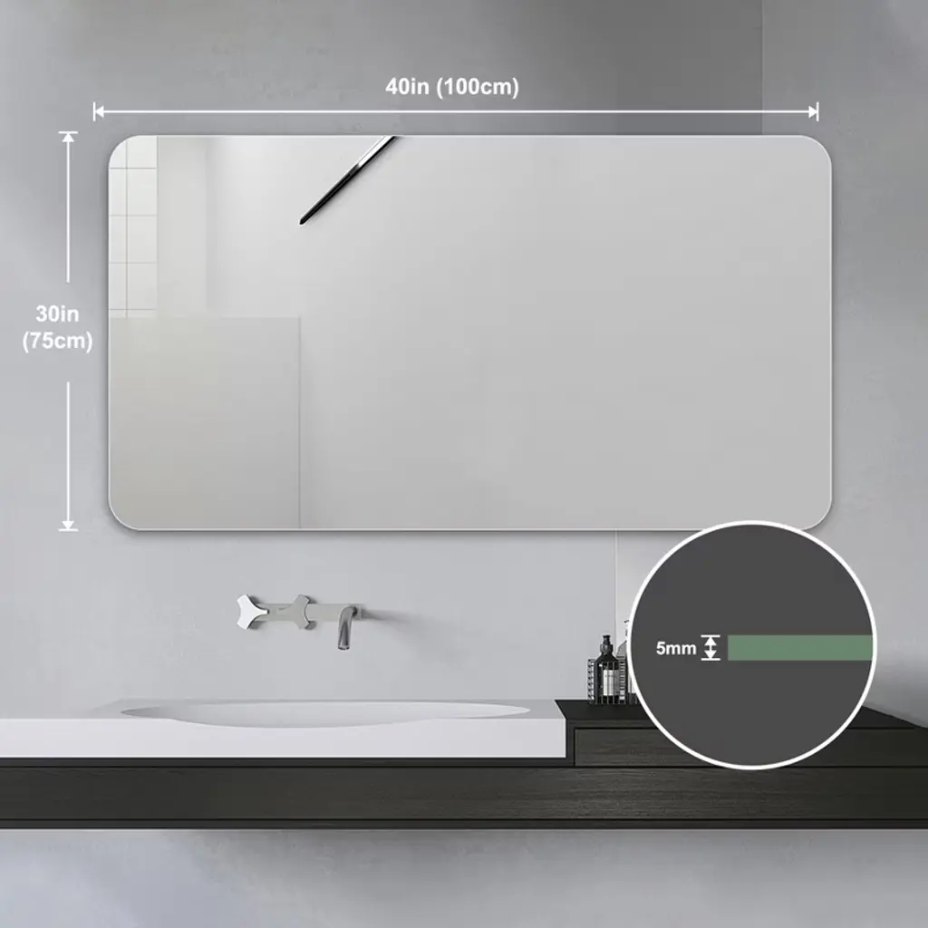 Ridstar 40 In. W X 30 In. H Clear Modern Frameless Rectangular Bathroom Mirror