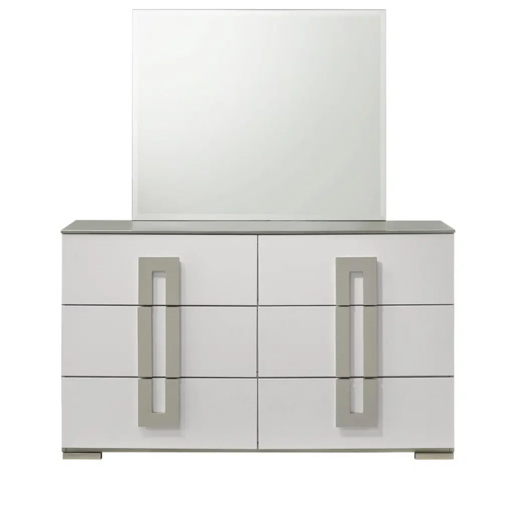 Featuring a clean, minimalist frame with a semi-gloss finish, the mirror is designed to perfectly complement the matching dresser and add a touch of sophistication to your space.