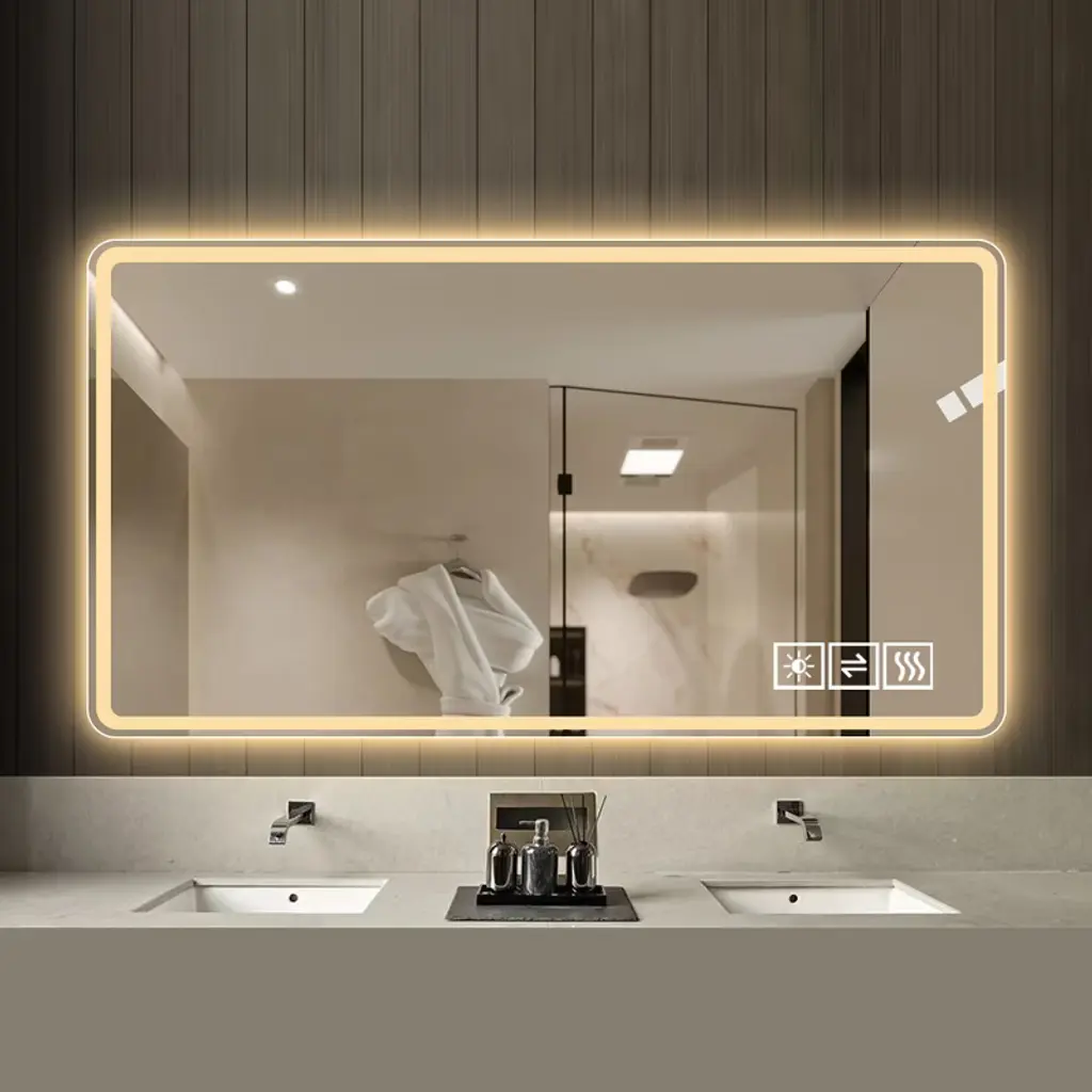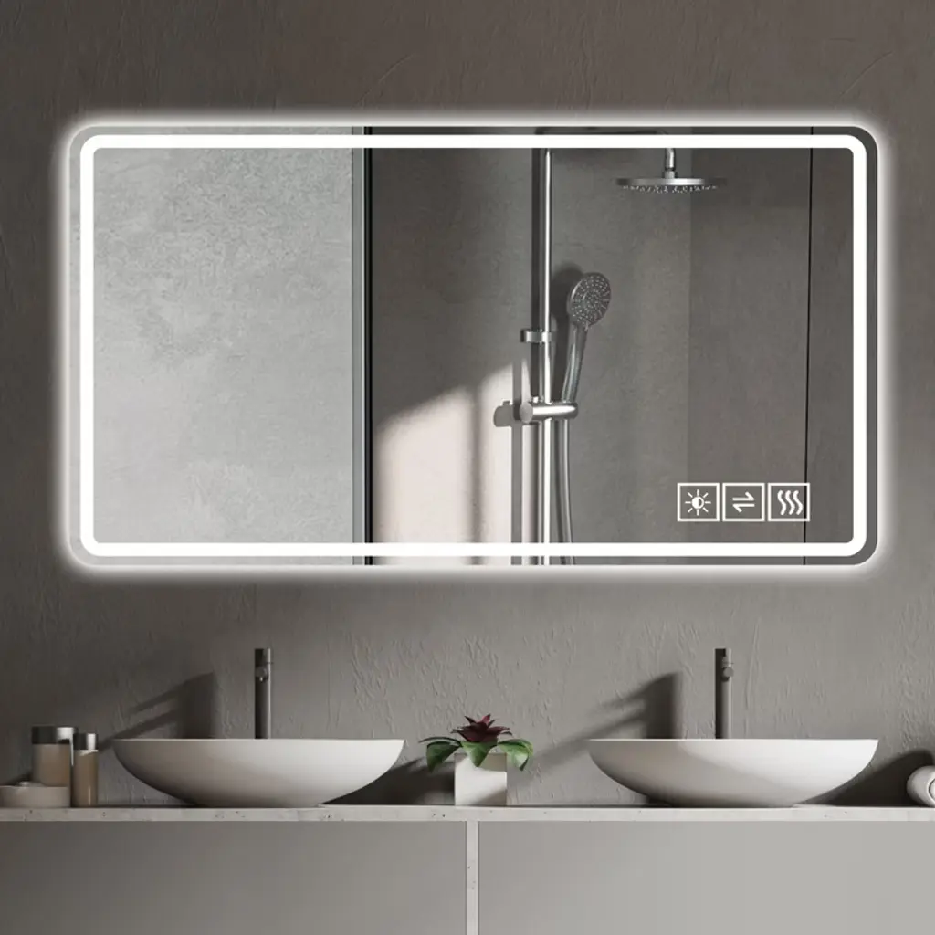 Our Lighted Up Mirror has 3 colors dimming lights: white light (6000K), neutral light (4000K), warm light (3000K). You can freely switch according to needs, and adjust brightness with a smart touch button.