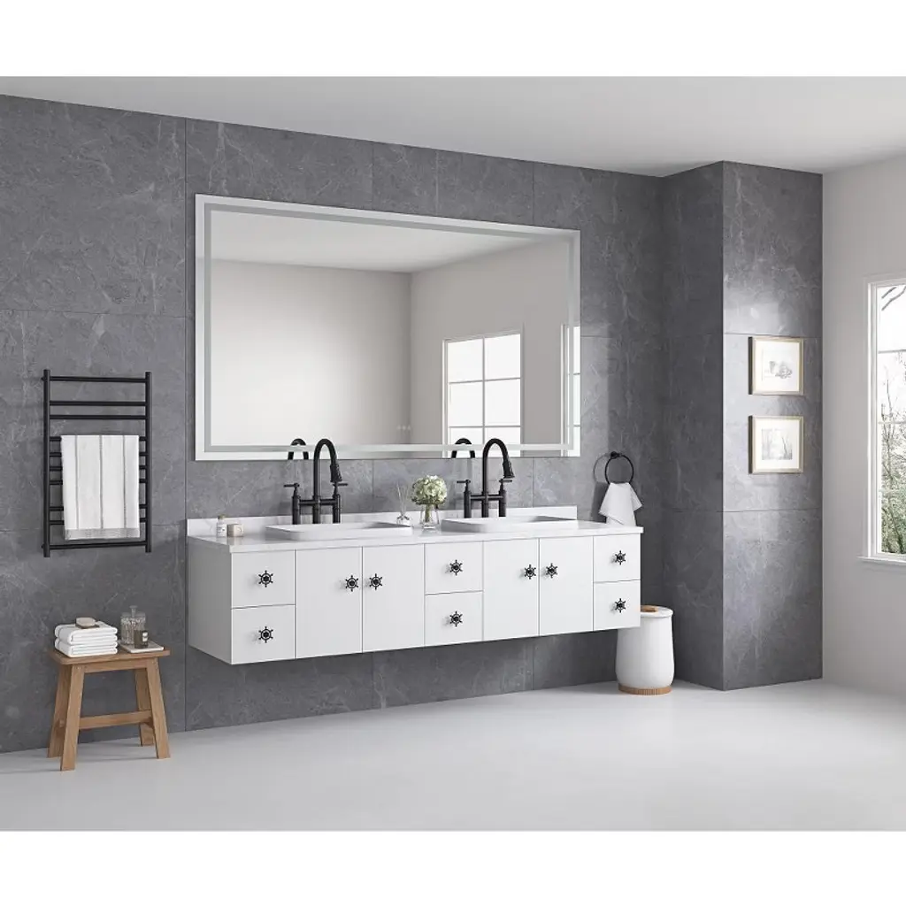 Ridstar 84 In. W X 48 In. H White Rectangular Bathroom Mirror With Led Lights