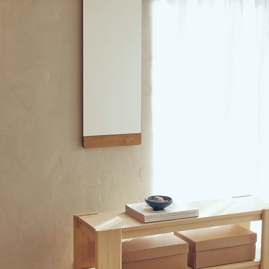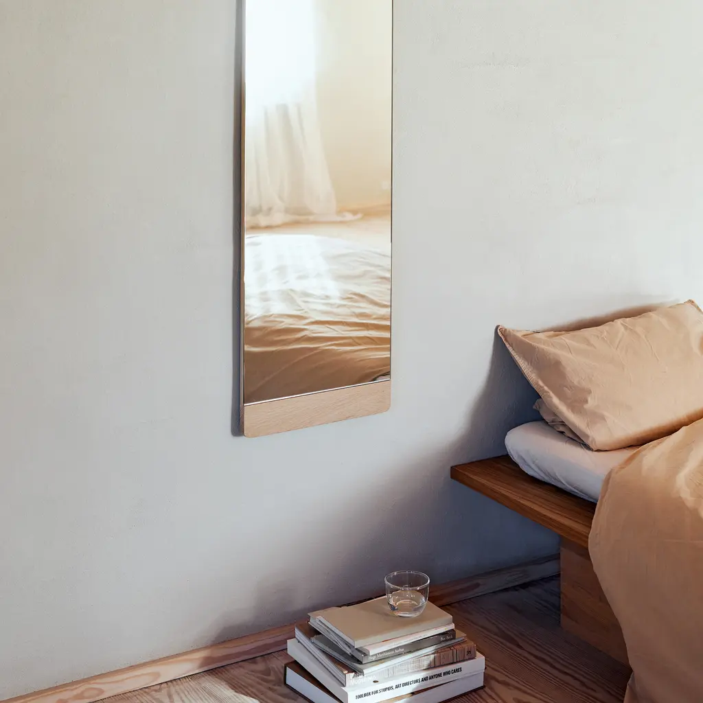 Let your choice of home accessories reflect your love of good design with the Form & Refine Rim Mirror. Designed by Jonas Herman, co-founder of Herman Studio, this wall mirror has an ingenious frame that creates an “infinity glass” look. At the top and bottom, two strips of solid oak with rounded edges give warmth and texture to the elegant design. Thanks to the large radius of the back support which creates a soft shadow, the mirror seems to float on the wall. Beautifully crafted, the Form & Refine Rim Mirror is made from FSC-certified European oak with a natural or a white oil finish. This design is perfect for any space, from hallways and bathrooms to living rooms and bedrooms.
