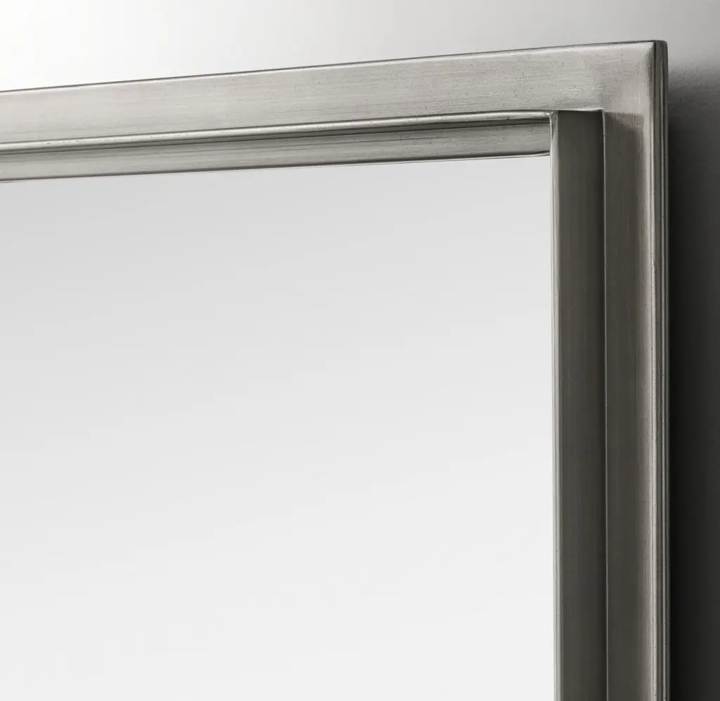 A geometric shape and unadorned frame give our mirror its modern edge. The metal's smooth finish is gently distressed for industrial character. SHOP THE ENTIRE COLLECTION