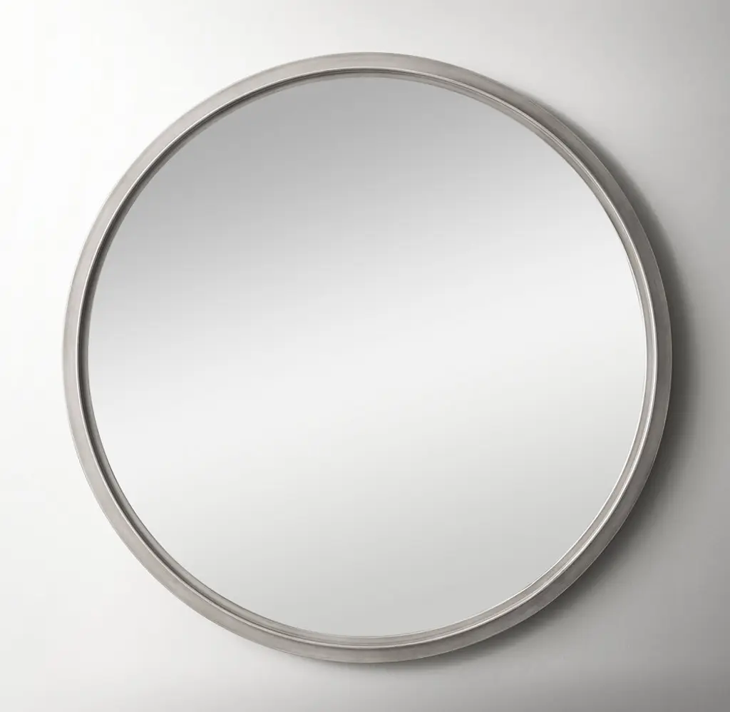 A geometric shape and unadorned frame give our mirror its modern edge. The metal's smooth finish is gently distressed for industrial character. SHOP THE ENTIRE COLLECTION