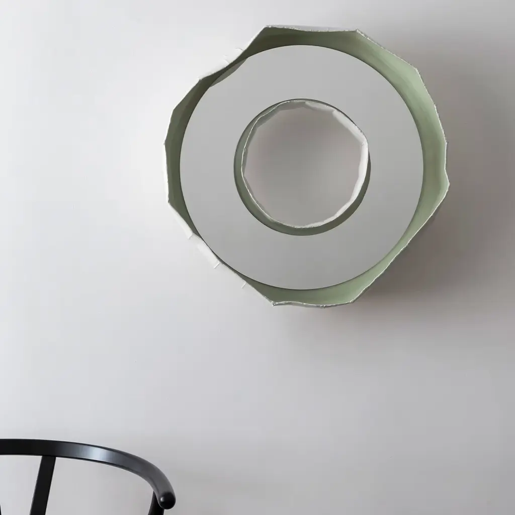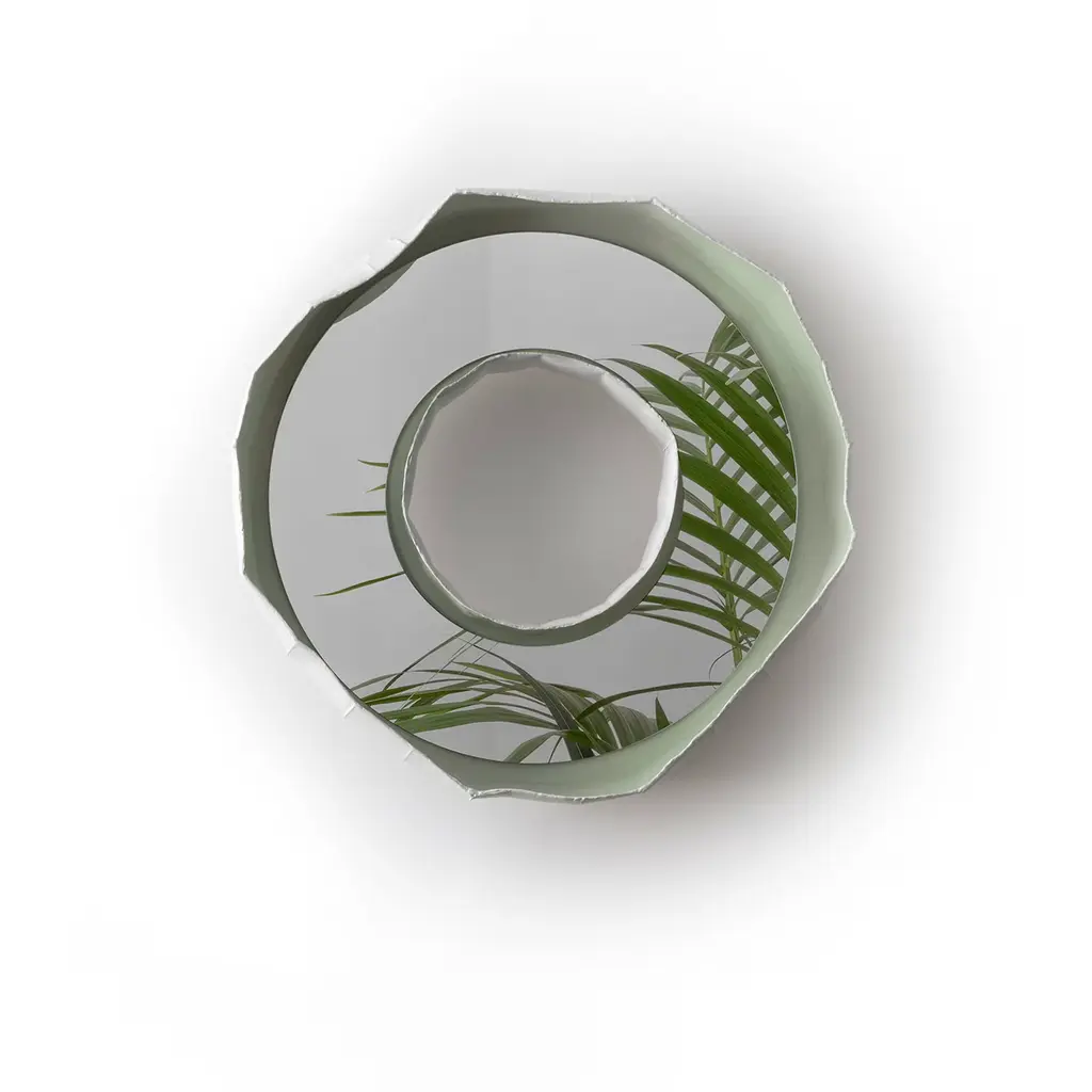 Handmade in Italy by Paola Paronetto & Giovanni Botticelli, this mirror merges ceramic with glass. REFLECTIONS, a fusion of distinctive materials developed by their creators, unites an apparently light material such as paper clay with the crisp lines of the mirror. The result is a thoughtful and meticulous balance, warm and delicate. The chromatic harmony is purposeful and unites the two materials seamlessly. Available in 5 colors options plus an extensive palette of colors for bespoke requests.