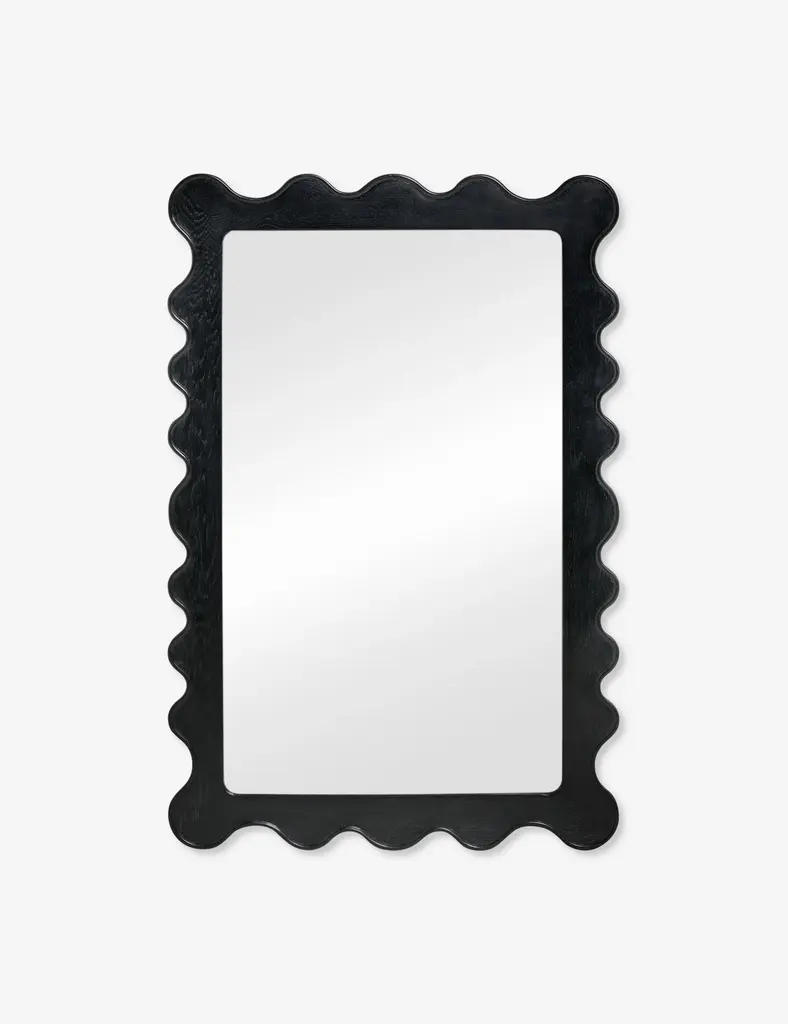 Wavy lines create a distinctive profile in this oak-framed mirror, clad in a honey finish to highlight the natural grain. This wooden mirror's undulating shape offers some signature flair to your look and lends it organic appeal. This piece is from our exclusive Sarah Sherman Samuel collaboration and features all the trademarks of her warm, edited style.