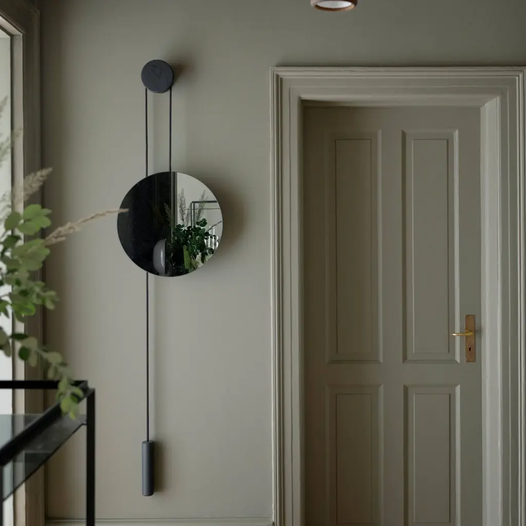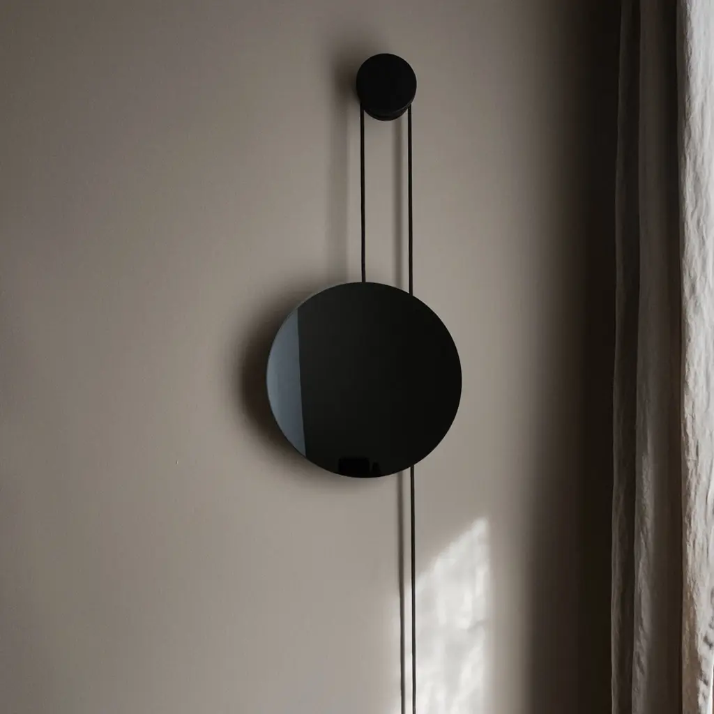 Rise + Shine takes on a new meaning with this sculptural wall-mounted mirror counter-balanced with a solid brass weight from Denmark's New Works. The wall-mounted assemblage features a circular smoked-glass mirror attached to a rope that wraps around a small wood disc. Raise or lower the mirror as the desired height or pleasingly reflective effect dictates. "By blurring the definition of its use, the mirror does not limit itself to a specific room," says Amy Hunting of the Norwegian-born, now London-based designer duo Hunting & Narud.