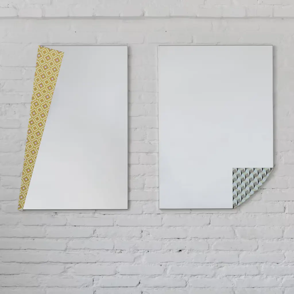 The Risvolti mirrors mix unconventionally a high-tech material such as Supermirror steel and opaline glass gone out of production since the ‘50. The steel modernity contrasts the vintage taste of the colored mosaic tassels, skillfully placed to design two different patterns.