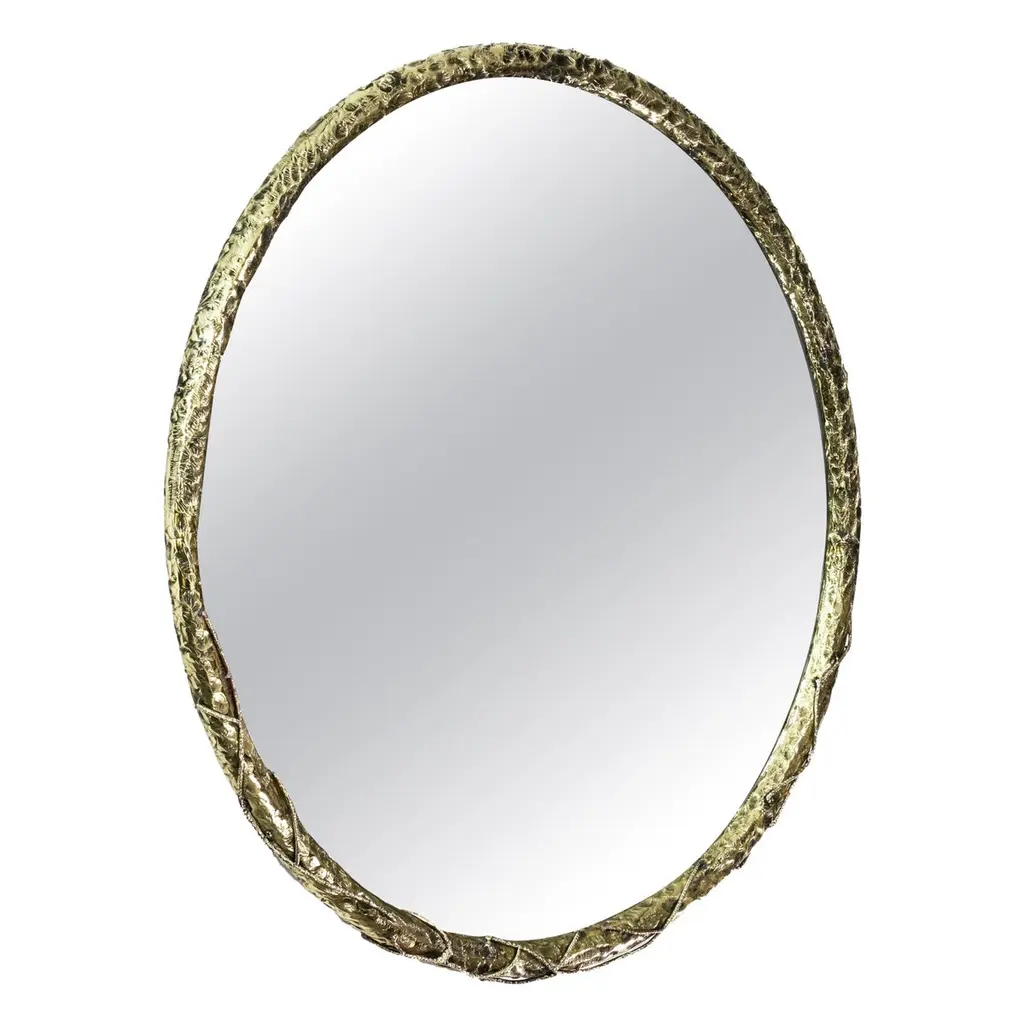 Chic and sophisticated, this rounded mirror boasts a cast resin frame finished in a glamorous gold metallic leaf. Its textured, eye-catching design easily gives interest and a luxurious touch to the space. Available in two sizes, it styles well above consoles, and in entryways or powder baths.