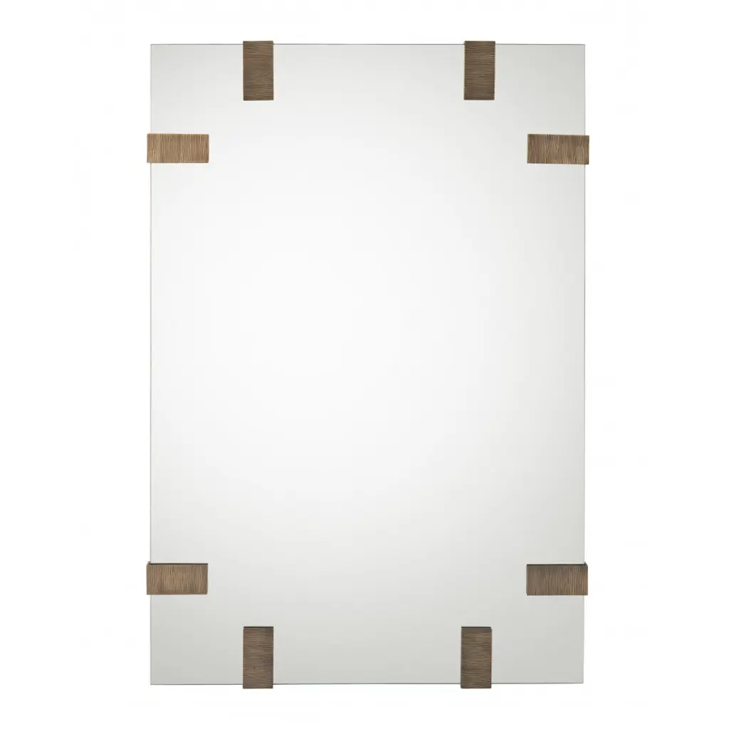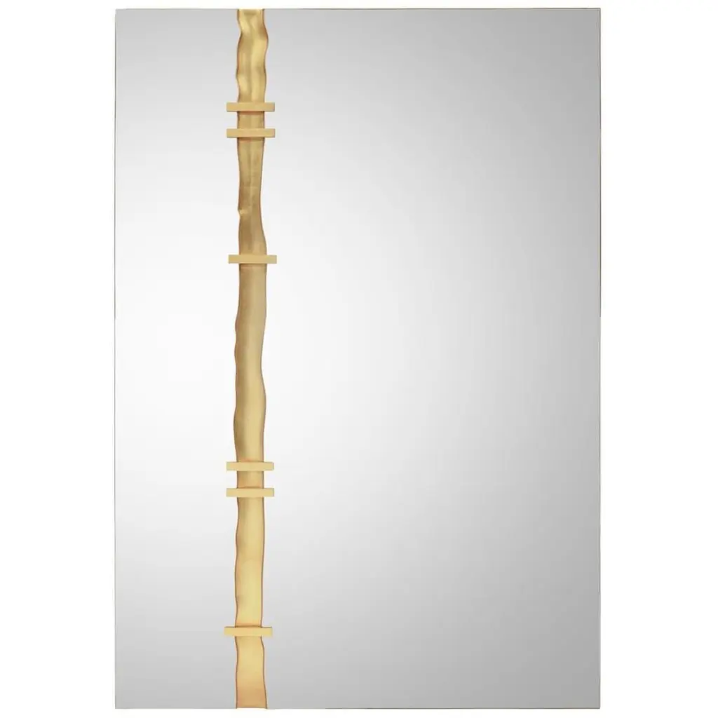 Golden rivets appear to hold both sides of this rectangular mirror together across a crevasse, also finished in exotic gold.