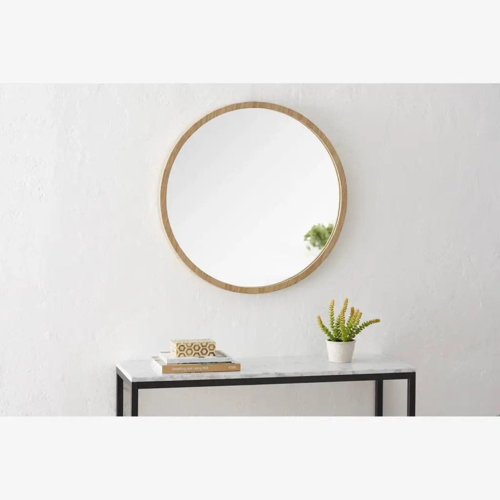 An elegant wood frame wall mirror in oak or walnut, the Rivington makes a great addition to your bedroom or bathroom. Note: Installation is not provided in our delivery but hanging hardware is affixed to back of mirror. Two screws are required for installation.