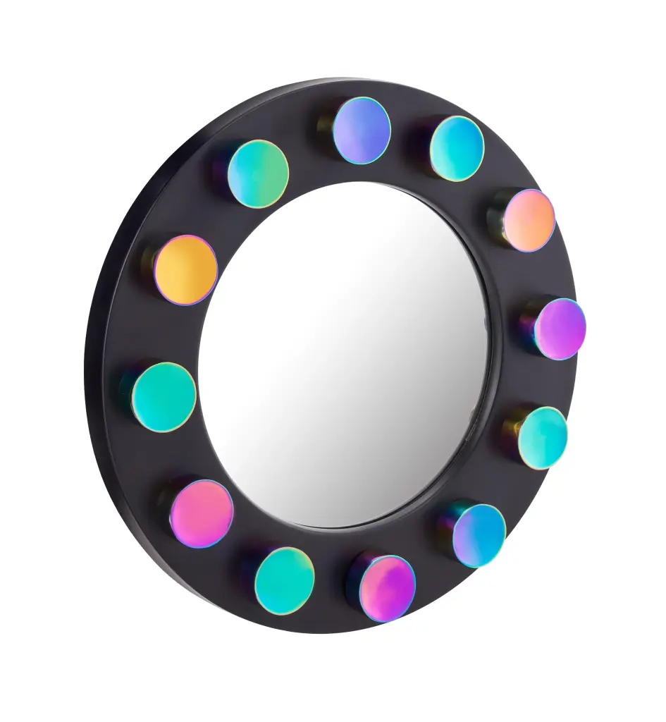 Decorating your space just became a whole lot more exciting! The Rockstar mirror boasts a matte black finish complemented by iridescently colored studs. Whether used alone or with its matching occasional tables, the Rockstar is sure to add stylish flair to your space.