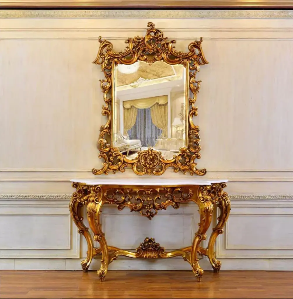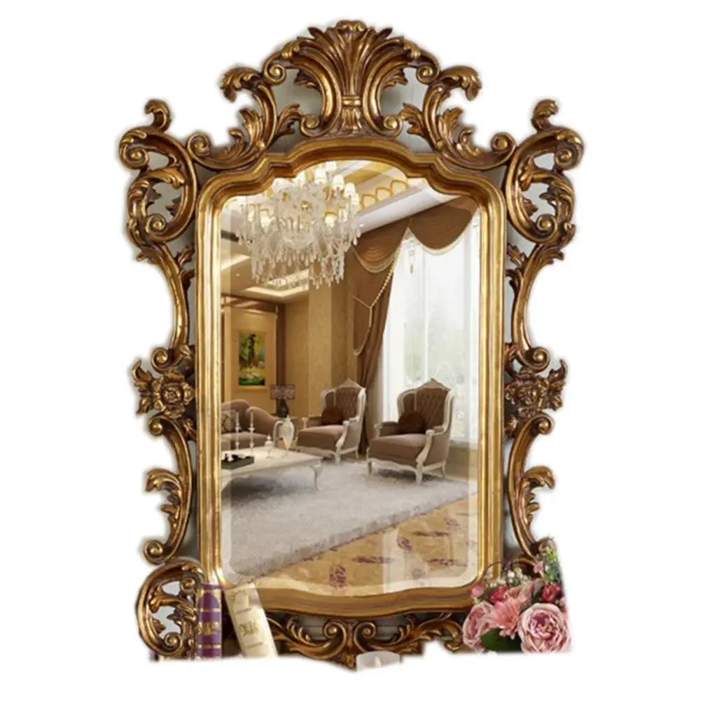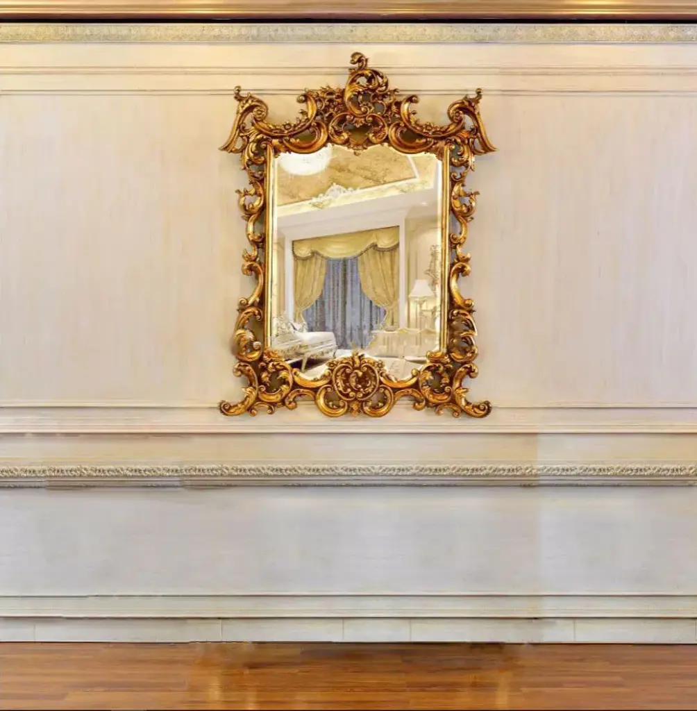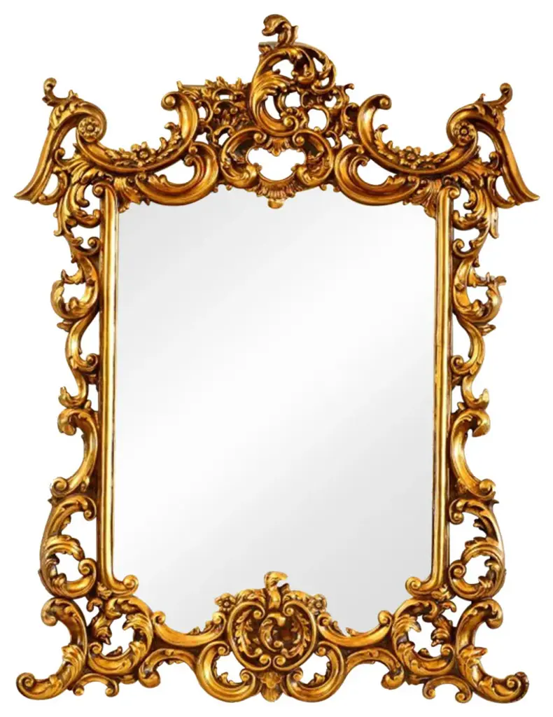 A finely french gilded traditional gold leaf mirror that will make a greataccent piece and will compliment as a great home decor. Elegantly carved ornate mirror will make a great hanging piece. It is sturdy high quality that will last for a long time.