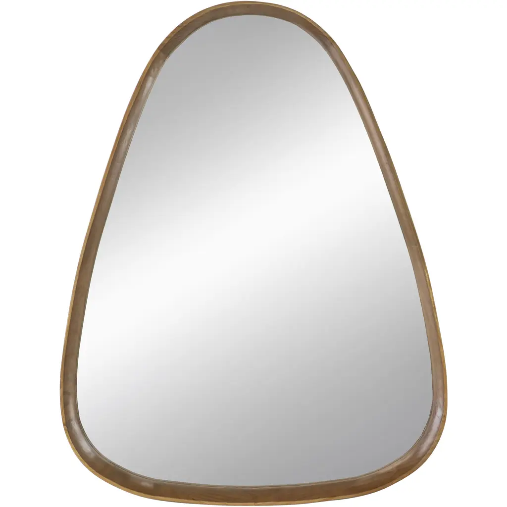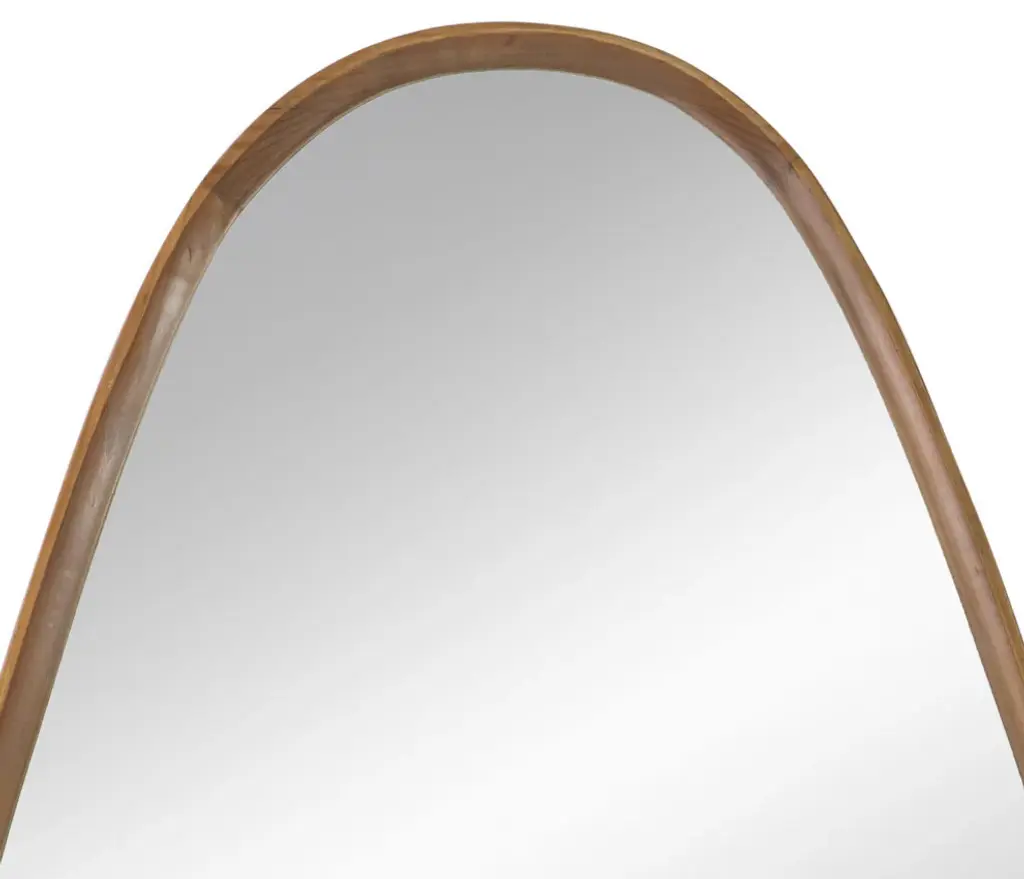 Roe 37 Inch Accent Wall Mirror, Brown Curved Pine Wood Frame, Minimalistic
