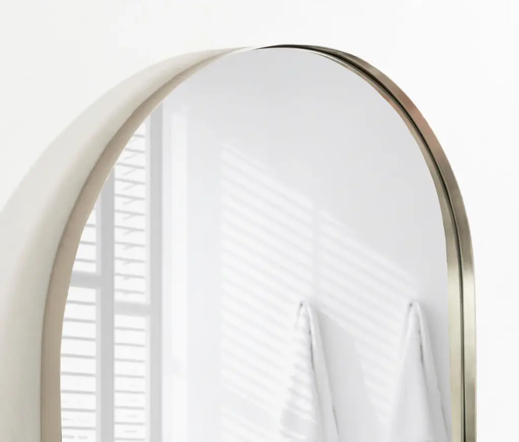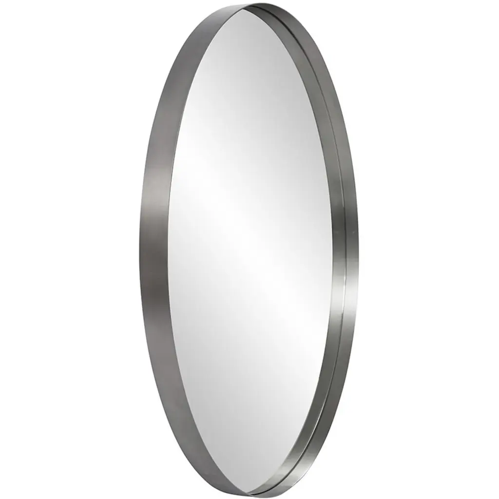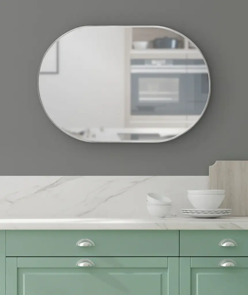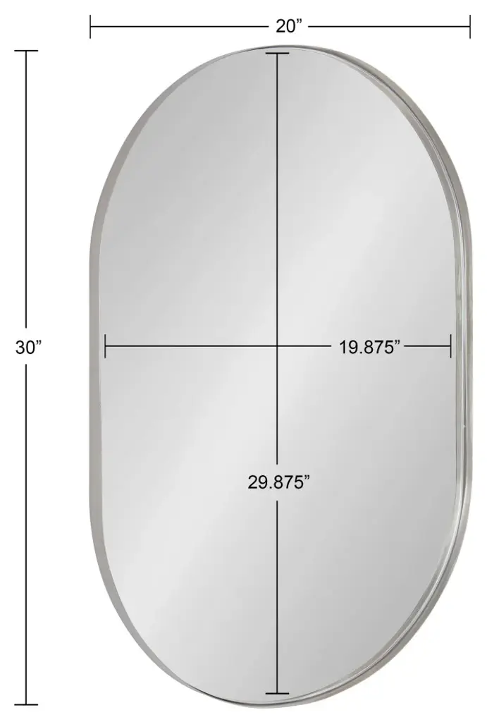 Enhance the modern sophistication of your wall with this bold Rollo mirror. Inspired by contemporary aesthetics, this beautiful mirror features a geometric oval shape, presenting symmetrical arching lines for a bold look. The frame of the Rollo is made from a resilient metal material, portraying a robust look and quality. This frame also features an elegant silver finish, making it a striking visual statement for any wall of your home. The overall dimensions of this mirror are 20 inches by 1 inch by 30 inches, perfect for capturing a fabulous focal point and creating a cohesive room scene. Use it as a decorative accent piece in your living room, bedroom, or entryway, utilizing the large mirrored surface area to reflect light and enhance the dimension and mood of your space. If you''re looking to refresh your master bathroom or powder room, you can also use the Rollo capsule as a bathroom mirror above your vanity. This mirror hangs both vertically and horizontally to match your decorating needs. Use the metal keyhole hangers attached to the back of the frame for quick and efficient installation in a matter of minutes.• BOLD DESIGN: Inspired by modern aesthetics, this mirror features a geometric capsule oval shape • QUALITY FRAME: This beautiful mirror has a slim metal frame with a silver finish for a sleek and elegant look• LARGE SIZE: The overall dimensions of the Rollo capsule mirror are 20 inches by 30 inches, creating an eye-catching statement piece for any room of your home• VERSATILE: Use this lovely oval mirror as a functional bathroom mirror above your vanity or a decorative focal point to bring your aesthetic together in your entry, living room, or bedroom• EASY TO HANG: The Rollo mirror includes resilient keyhole hangers attached to the back of the frame for a quick and sturdy installation both vertically and horizontally