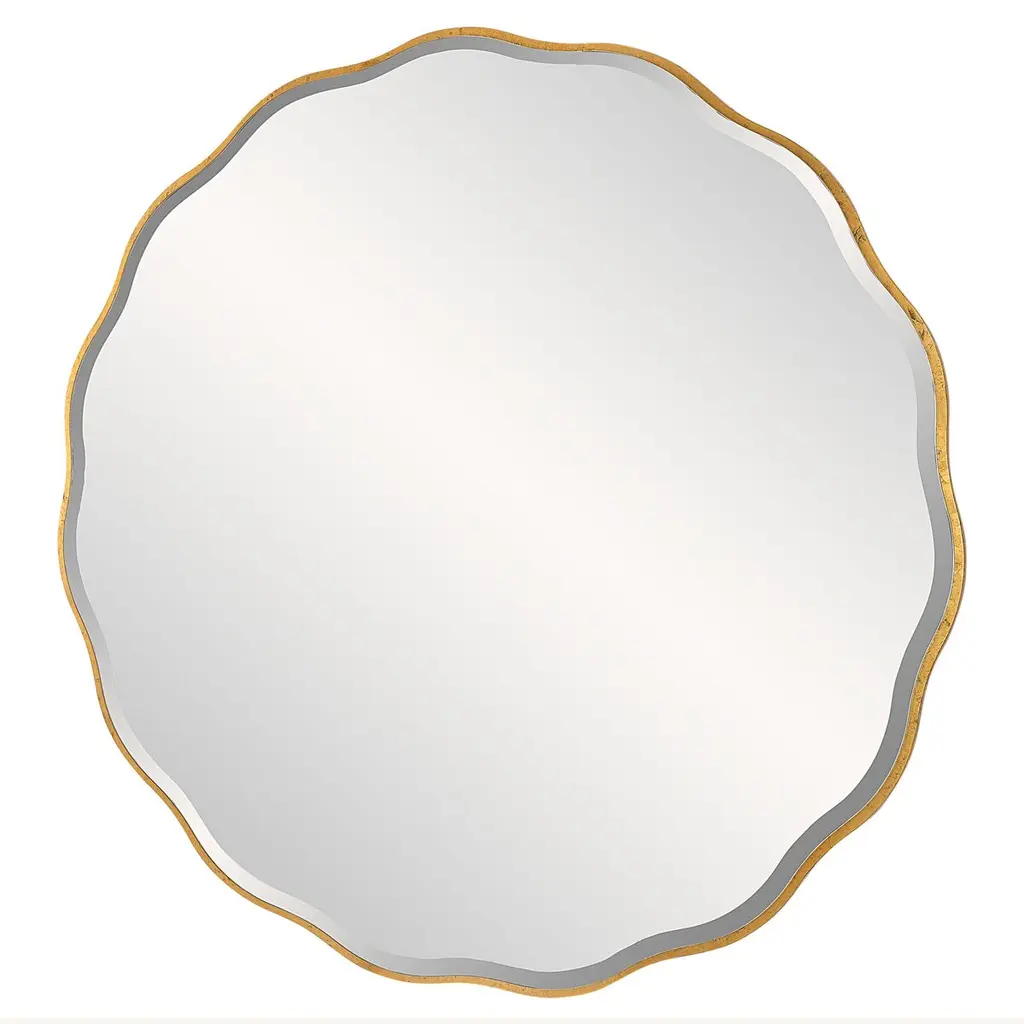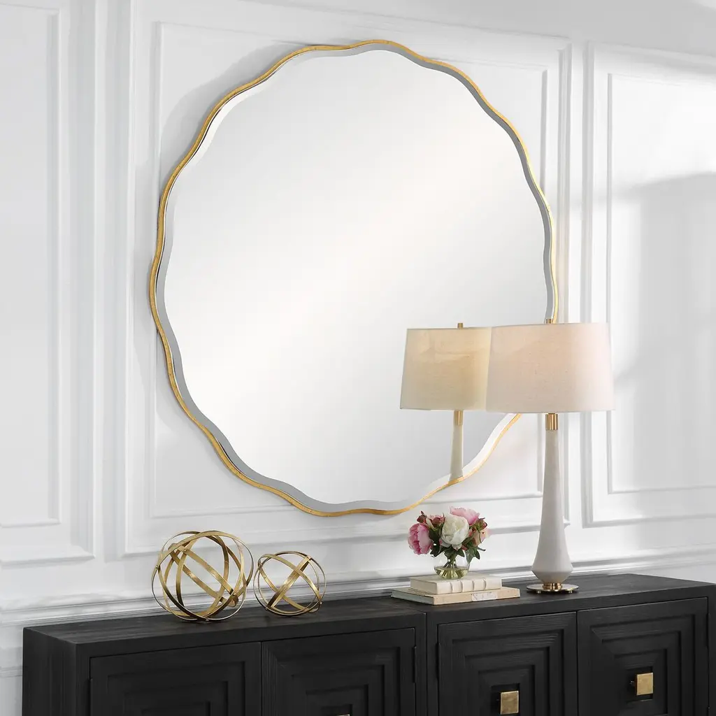 Ronan 60" Large Scallop Round Wall Mirror, Gold