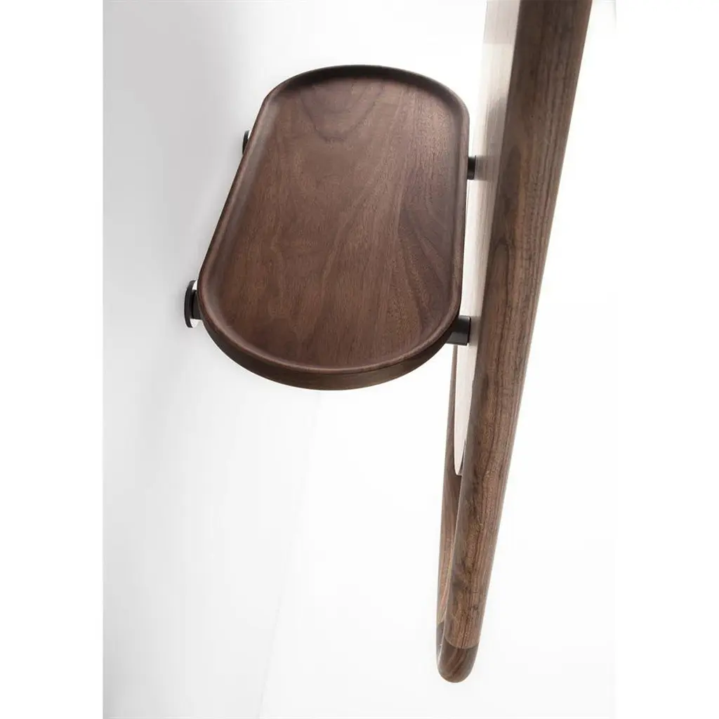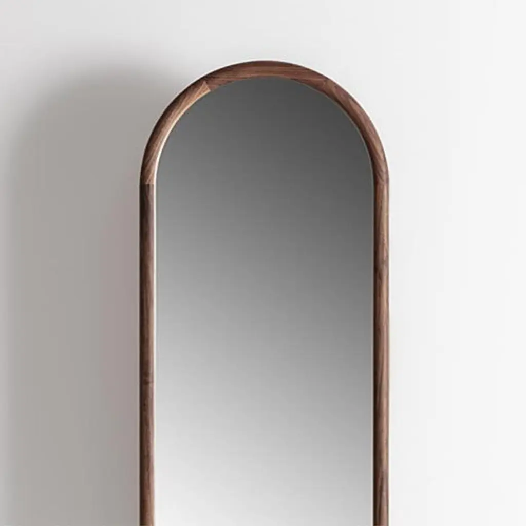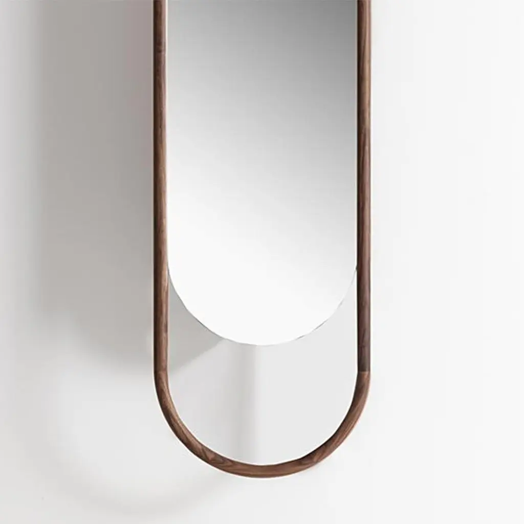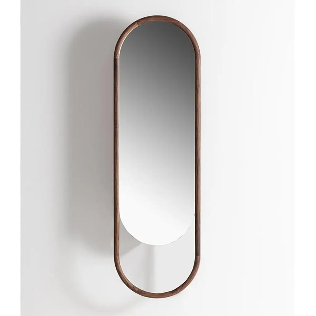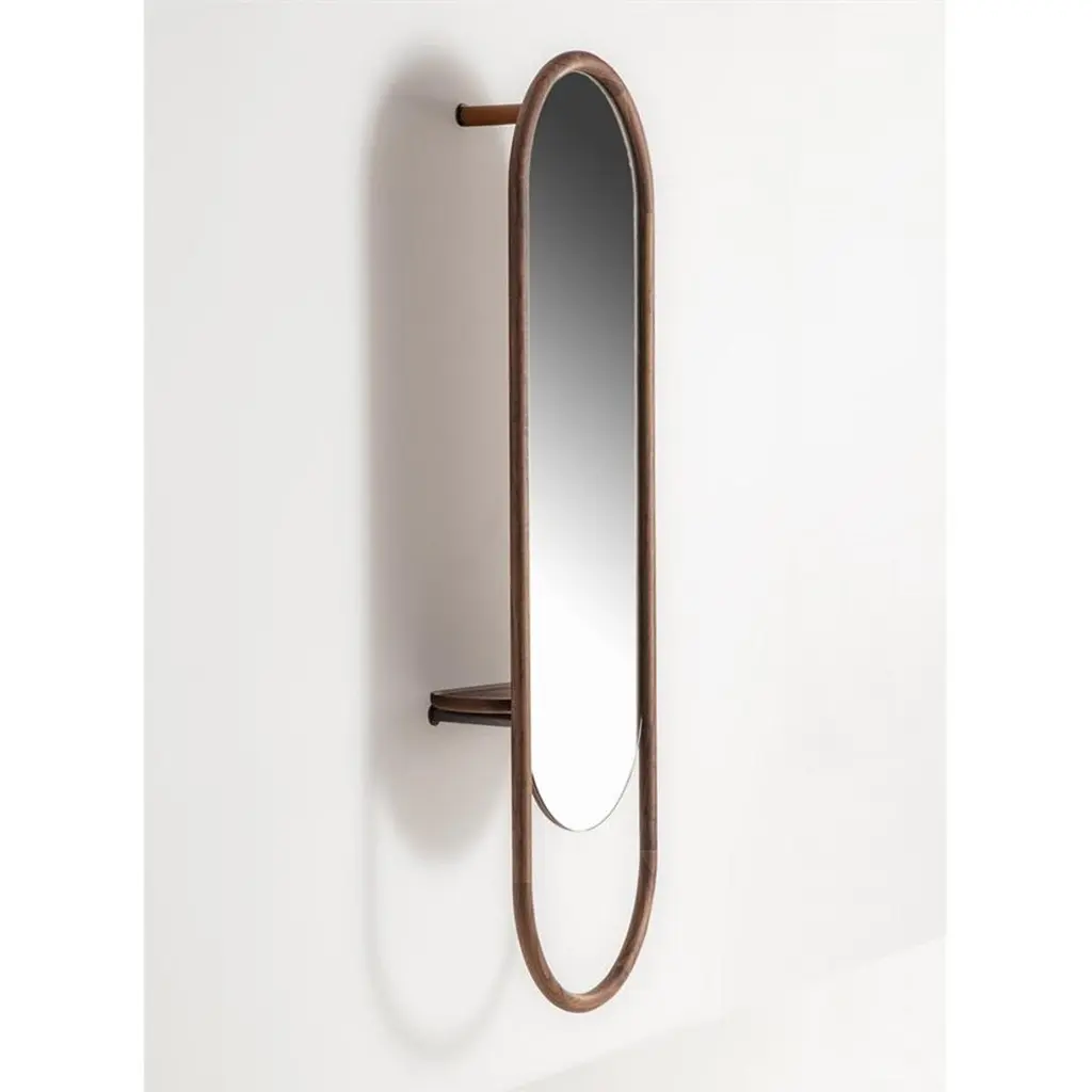 Mirror roomy walnut made with solid handcraftedwalnut wood, with solid handcrafted walnut woodframe with mirror glass, with coin tray in solid walnutand a hanging bar covered with genuine leather.