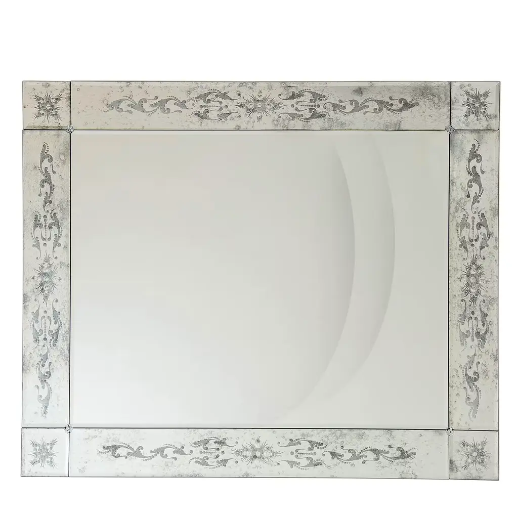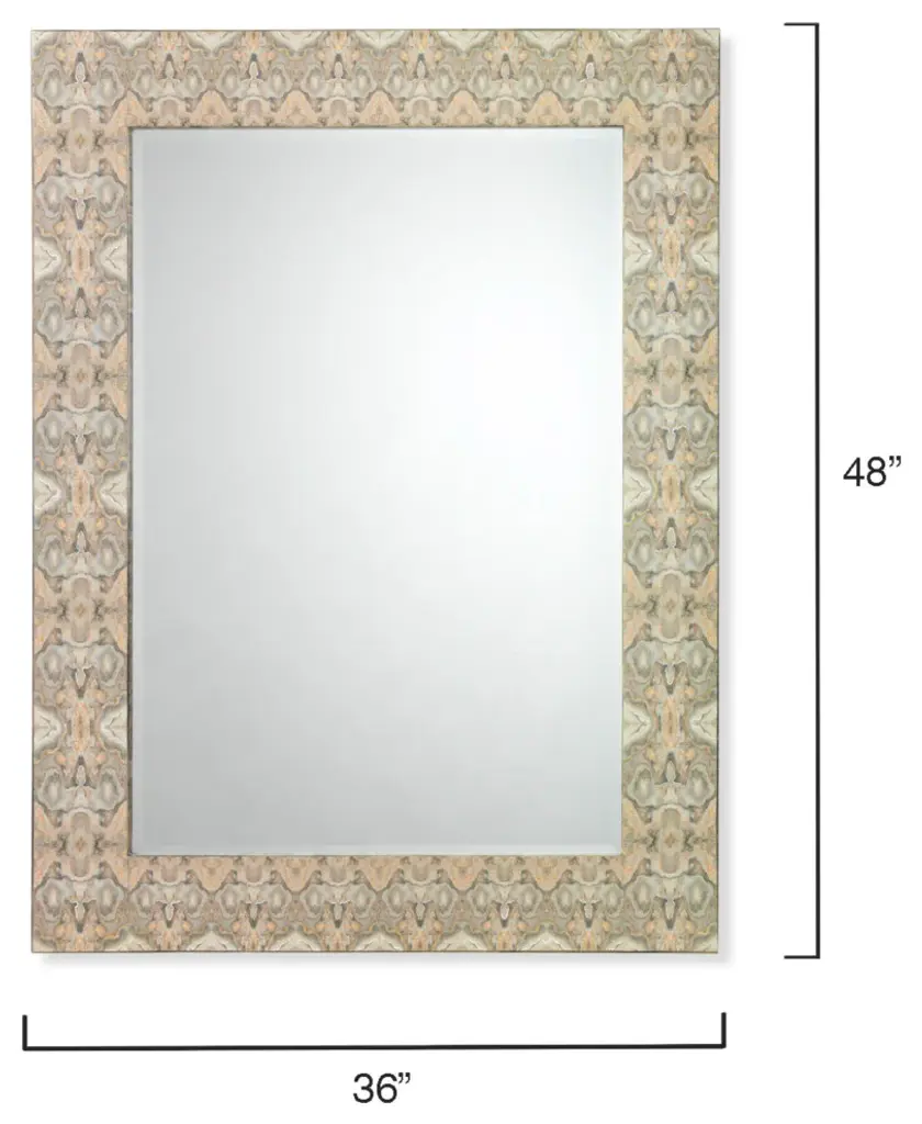 Inspired by Rorschach inkblots tests, known to examine emotion through interpretation, our Rorschach mirror inspires you to look closer into the neutral tones of grey, taupe and cream, accented with silver and gold leaf. These components create dynamic patterns through overlaid photos underneath a clear lacquer.•Crafted of Paper, Lacquer and MDF•Beveled glass mirror•Mirror can hang vertical or horizontal•One-of-a-kind variations in tone and patternPattern and finish may vary. Avoid excessive exposure to direct sunlight, high temperatures or high humidity. •Mirror Surface: 38""H x 26""W•D-Loop Hanging Mechanism•Frame: 5""W•MDF BackingCare Instructions: Wipe frame with a soft, dry cloth. Wipe glass with standard glass cleaner. DO NOT use cleaners or abrasives on mirror frame.