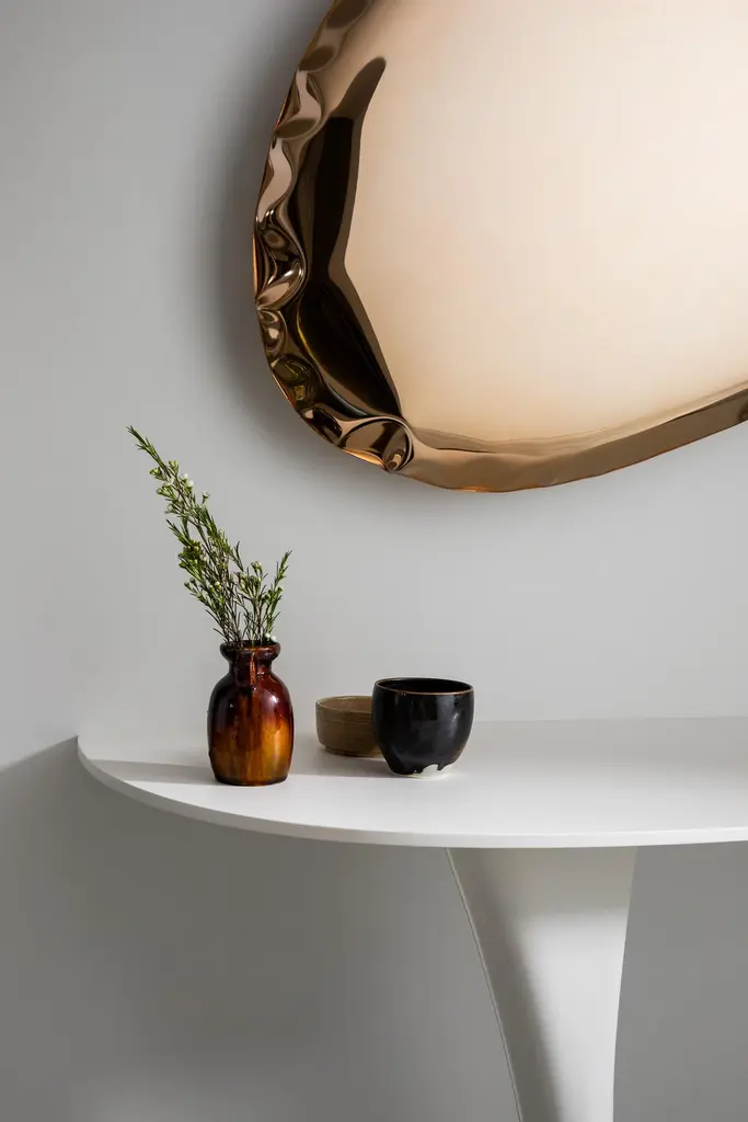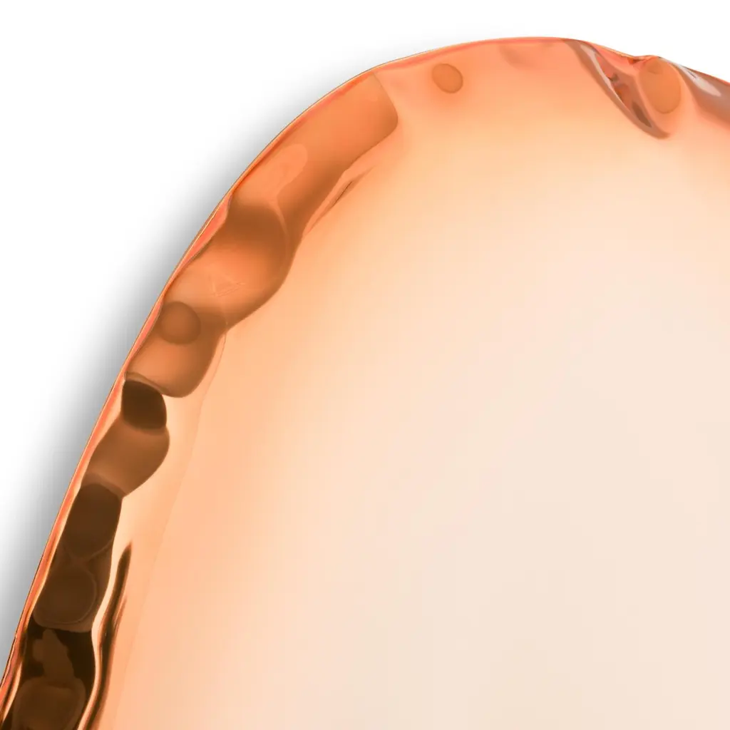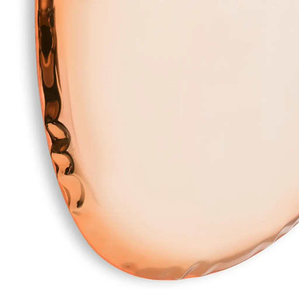 Rose gold tafla O4.5 wall mirror by ZietaDimensions: D 6 x W 57 x H 86 cm Material: stainless steel.Finish: Rose gold. Available finishes: stainless steel, white matt, sapphire/emerald, sapphire, emerald, deep space blue, dark matter, red rubin, light gold, classic gold, or rose gold. Also available in other sizes.TAFLA O mirror is a bionic sculptural object made by Zieta Studio using FiDU technology. The irregular shape of the mirror is an effect of inflating two-dimensional metal sheets with pressurized air – this way some slight distortions appear on the edges giving each object a unique character.The TAFLA O steel mirrors from the Transitions Collection come in two colors: Rubin Red and Dark Matter. These well-defined strong hues were created with extravagant interiors and their users in mind. Such mirrors covered with semi-transparent lacquer will be a stunning addition to stylish private living rooms, hotel lobbies, and restaurants.TAFLA O comes in seven different sizes – it can be arranged in an artistic personalized composition or exposed on a wall as a single sculpture-like mirror.About Zieta: Zietas main goal is to deliver uniqueness and customization in design and construction while keeping the production, transport, and warehousing innovatively efficient.This is how they imagine the future world: Light, durable structures of customized applications produced on demand out of one-of-a-kind parts, yet efficiently.They use a computer-controlled production process. Customized pattern, customized form, customized function, one-of-a-kind product, and outstanding precision are what they deliver.You will find all of this philosophy reflected in the products. They research, they discover new possibilities, they play with forms and they deliver a beautiful, innovative, surprising outcome to people who love the design and who care about design development.They believe their work is a valuable contribution to the world of design not only by the unique beauty of the forms but most of all by opening ultra-innovative opportunities of forming and new paths for the world of the future.