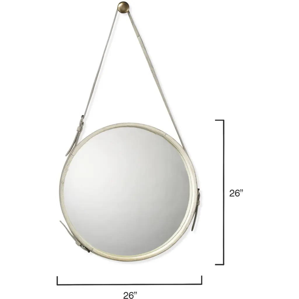 Round 26 X 26 Inch White Hide Wall Mirror