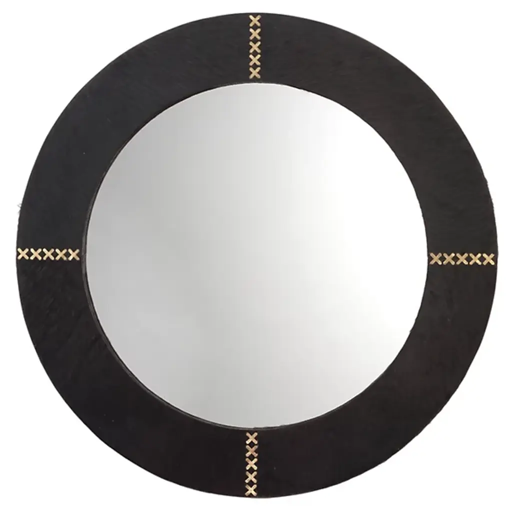 The Round Cross Stitch Mirror from Jamie Young Co. is all about the x’s and o’s as an intricately crafted design. The piece finds the right balance between sophistication and playfulness. It defines key areas in the home like a bullseye. Sporting a circular silhouette, one’s eyes are drawn to the cross-stitched accents atop the ring frame. This frame sports a natural texture that enhances the overall high-style personality.