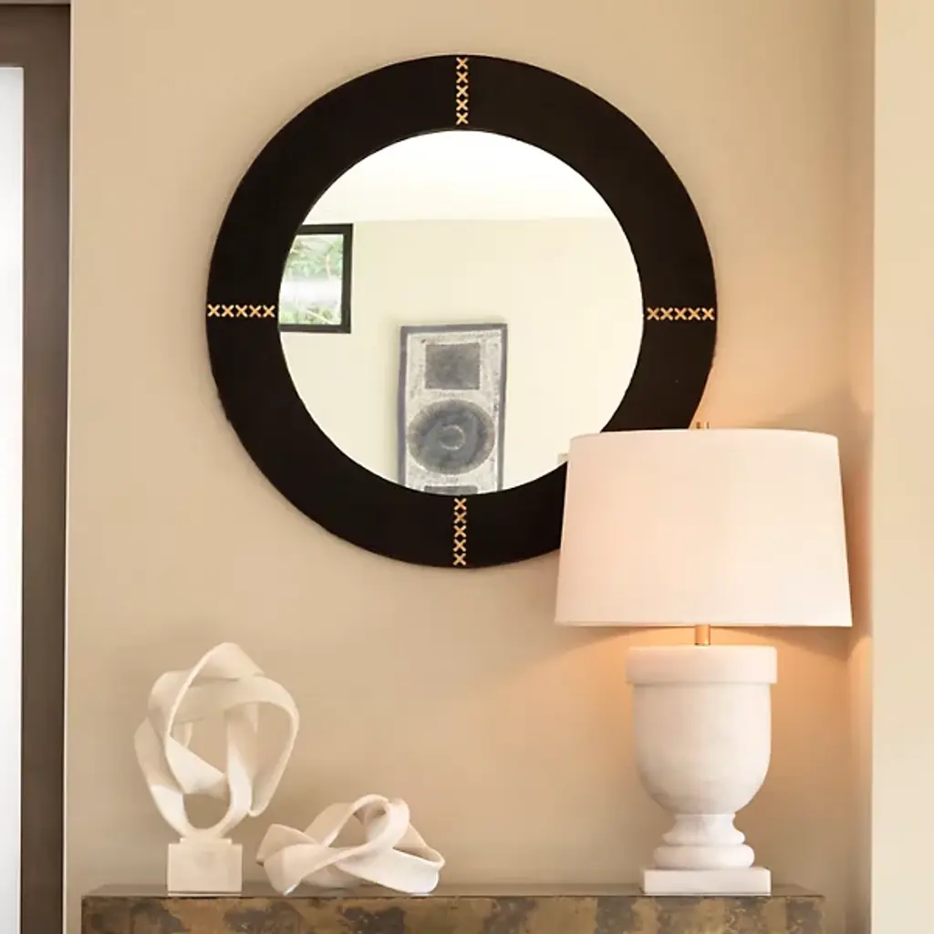The Round Cross Stitch Mirror from Jamie Young Co. is all about the x’s and o’s as an intricately crafted design. The piece finds the right balance between sophistication and playfulness. It defines key areas in the home like a bullseye. Sporting a circular silhouette, one’s eyes are drawn to the cross-stitched accents atop the ring frame. This frame sports a natural texture that enhances the overall high-style personality.