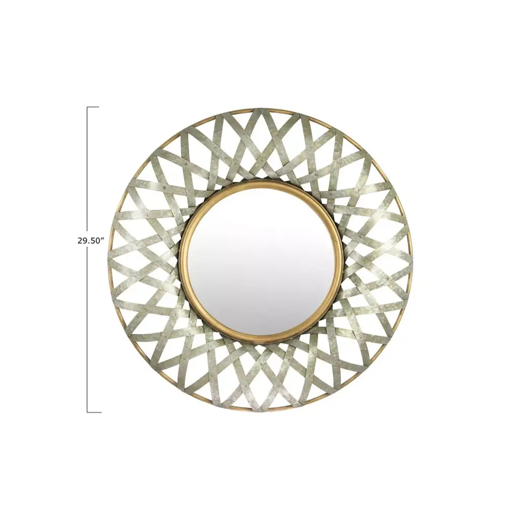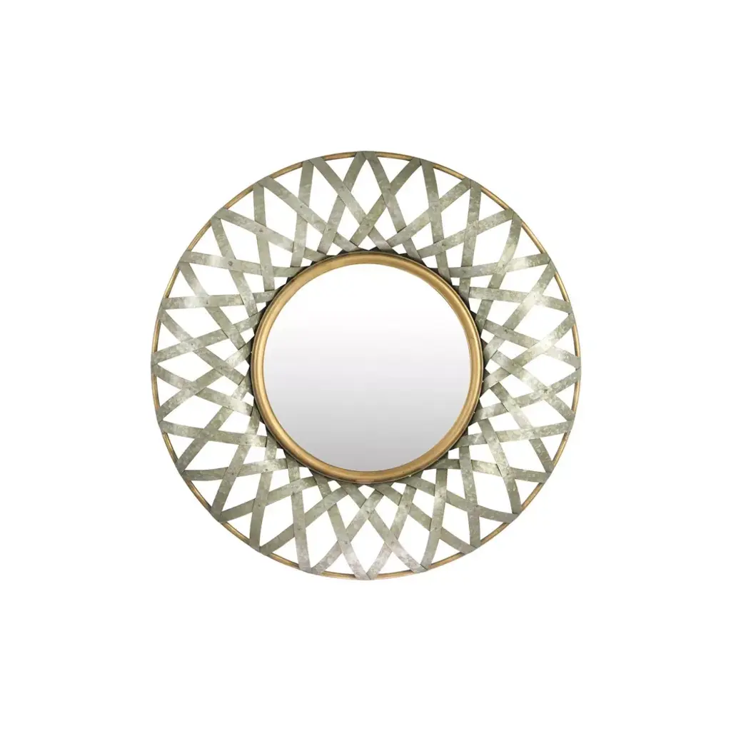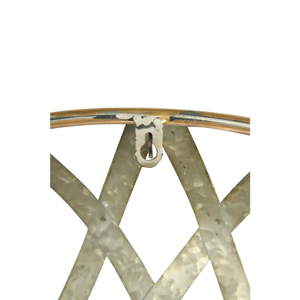 Brighten up your space with this stunning gold finish mirror. Its unique criss-cross design in galvanized metal gives it a rustic, farmhouse feel, while the gold finish adds a touch of glam. This metal and gold mirror is the perfect choice for accenting walls in any space with any style.