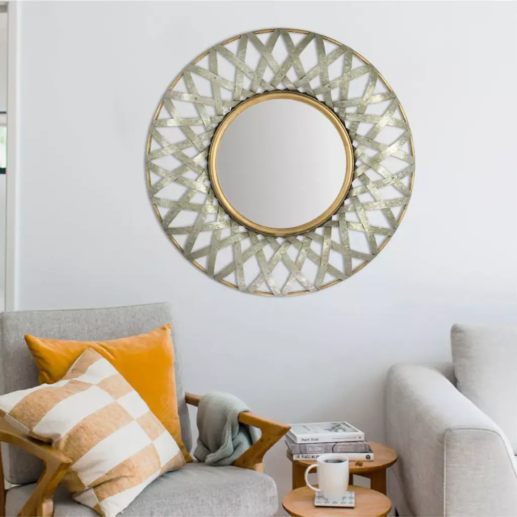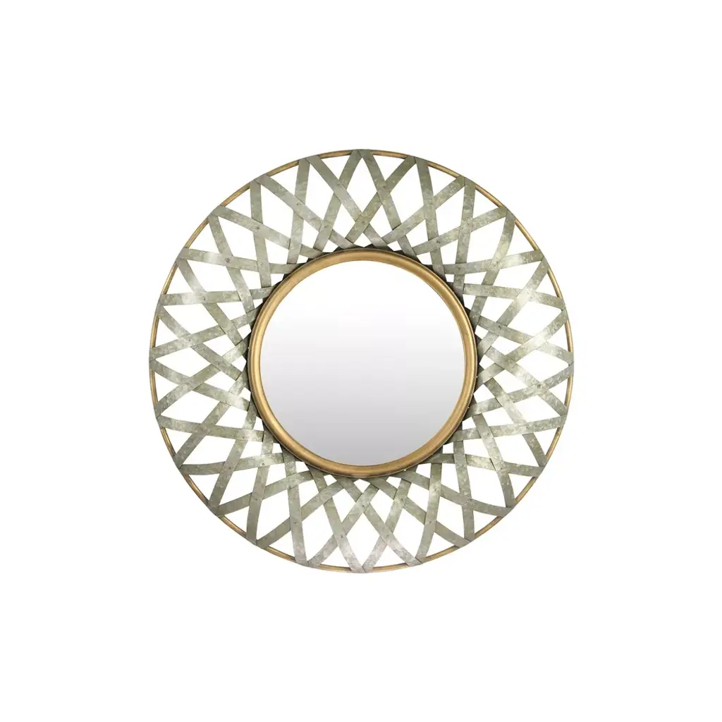 Round Metal Wall Mirror With Gold And Galvanized Finish - Storied Home: Iron Frame, No Assembly, Wall Mount