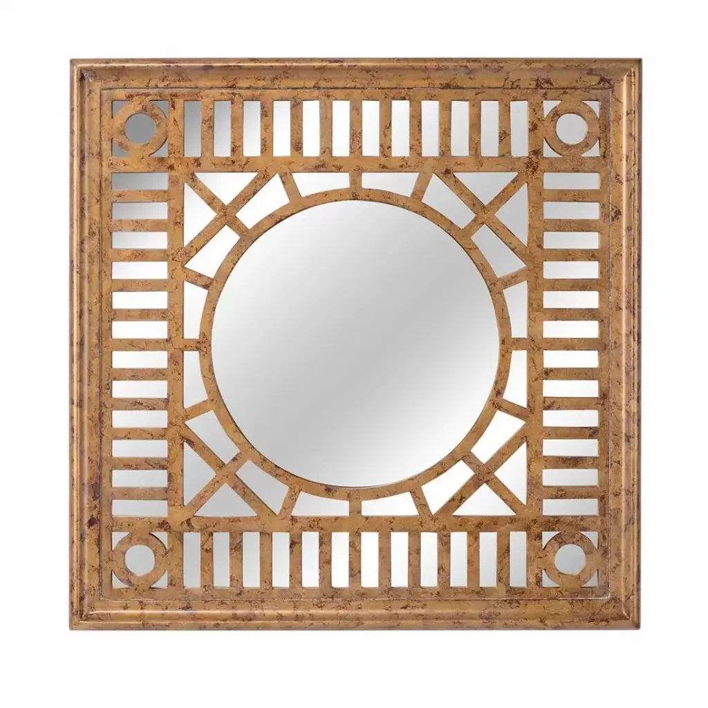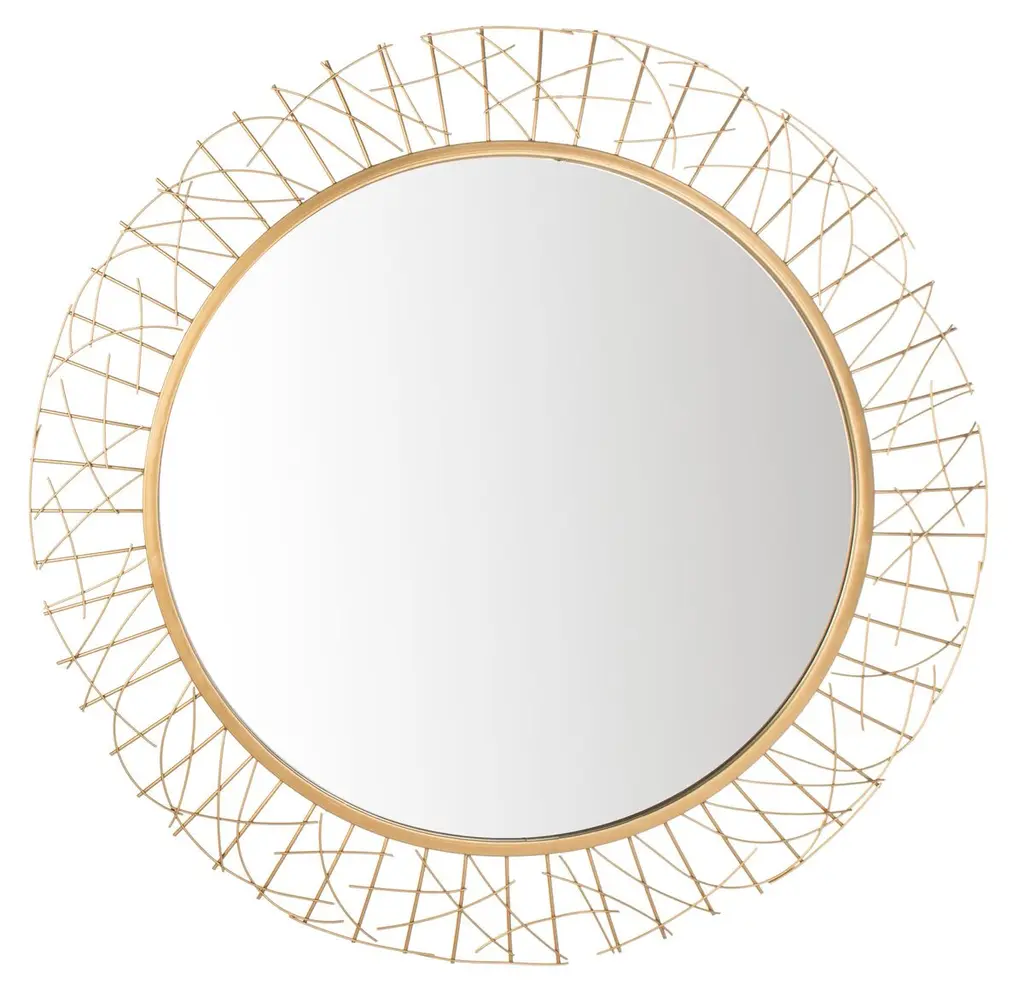 Brighten up your space with this stunning gold finish mirror. Its unique criss-cross design in galvanized metal gives it a rustic, farmhouse feel, while the gold finish adds a touch of glam. This metal and gold mirror is the perfect choice for accenting walls in any space with any style.