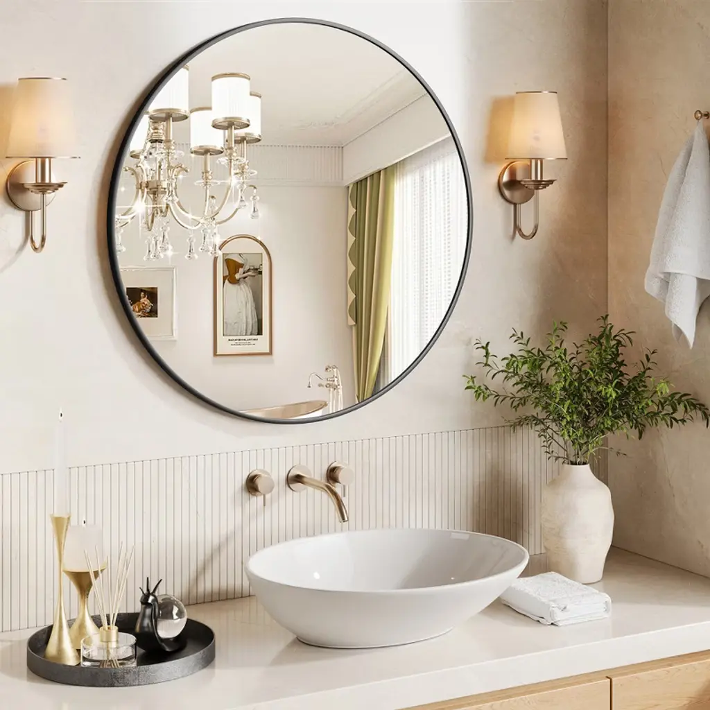 【Optimal Dimension for Versatility】Our Black Round Mirror is the perfect choice for enhancing the aesthetics of smaller spaces or complementing larger rooms. Its compact yet impactful size allows it to be a versatile piece across various settings such as entryways, bedrooms, and bathrooms. Add a touch of elegance and functionality to your home décor with this beautifully crafted piece, designed to blend seamlessly into existing styles from modern minimalist to traditional. 【Superior Reflective Experience】Step in front of our black round mirror and enjoy crystal-clear reflections that bring out your best. Crafted with a premium 5mm thick glass—thicker than the typical 4mm—our mirrors provide a flawless, distortion-free view that reflects true colors and details. This high-quality reflective surface is perfect for making precise makeup applications, styling your hair, or just giving your room a more spacious feel. 【Elegantly Crafted Modern Design】Elevate your living space with the sleek, modern aesthetics of our black metal framed round mirror. The matte black finish not only adds a touch of sophistication but also enhances the mirror’s ability to complement various decor styles. The minimalist design highlights the reflective surface, creating a focal point that is both functional and strikingly beautiful, ideal for making a statement in any room of your home. 【Hassle-Free Installation】Forget about complex installation procedures that take up your time and energy. Our round wall mirror comes with an easy-to-use hanging kit that allows you to mount it on the wall within minutes. This user-friendly feature is designed to save you effort and frustration, enabling you to enjoy your new mirror almost immediately after unpacking. Whether you’re a first-time homeowner or a busy professional, our mirror is the perfect solution for quick and easy home improvement. 【Dedicated to Your Safety and Satisfaction】At the heart of our product design is a commitment to your safety and peace of mind. Our round mirror features an explosion-proof backing that minimizes the risk of injury in case of accidental breakage. Encased in shock-resistant Styrofoam for shipping, we ensure that your mirror reaches you in perfect condition. Coupled with our proactive customer service ready to address any of your concerns, our product promises not only style and functionality but also a secure investment for your home.