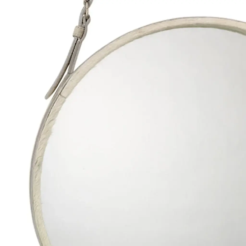 The Round Mirror from Jamie Young Co. is a handsome and strapping piece, incorporating elements of enduring fashion. The precision in its silhouette complements the clean home aesthetic. It creates great intrigue by suspending from a rod via non-adjustable hanging straps. These straps wrap around an elegant ring frame with bold buckle accents. Inside the ring frame rests a crisp mirror offering a brilliant reflection.