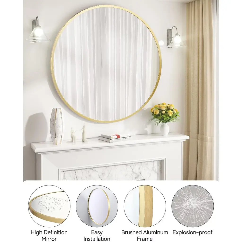 Round Mirror, Metal Frame Circle Mirror for Bathroom, Bedroom, Living Room, Entryway, Modern Decorative, Wall-Mounted Mirrors, Home, Gold