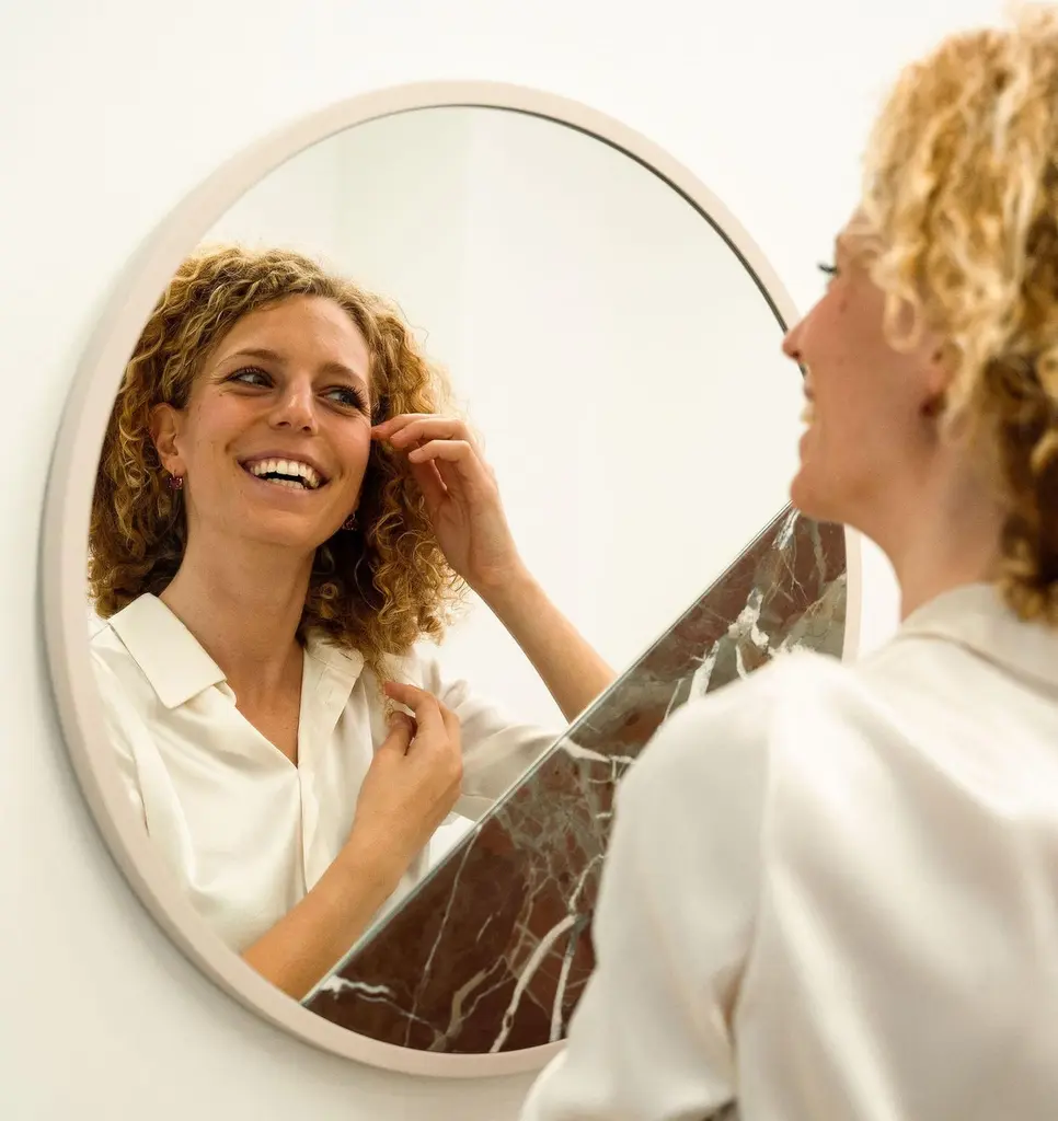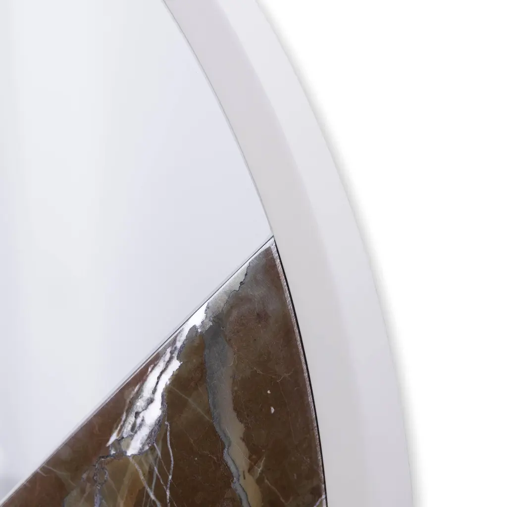 Mirror with exclusive marble "Red Valentine". This mirror has lacquered wood round frame that is manually refined by artisan in Italy. In fact, it is made 100% handmade in Italy by expert artisans. The marble type is customizable.Our Italian design team can guide you in choosing the right combinations of material for your house or project.