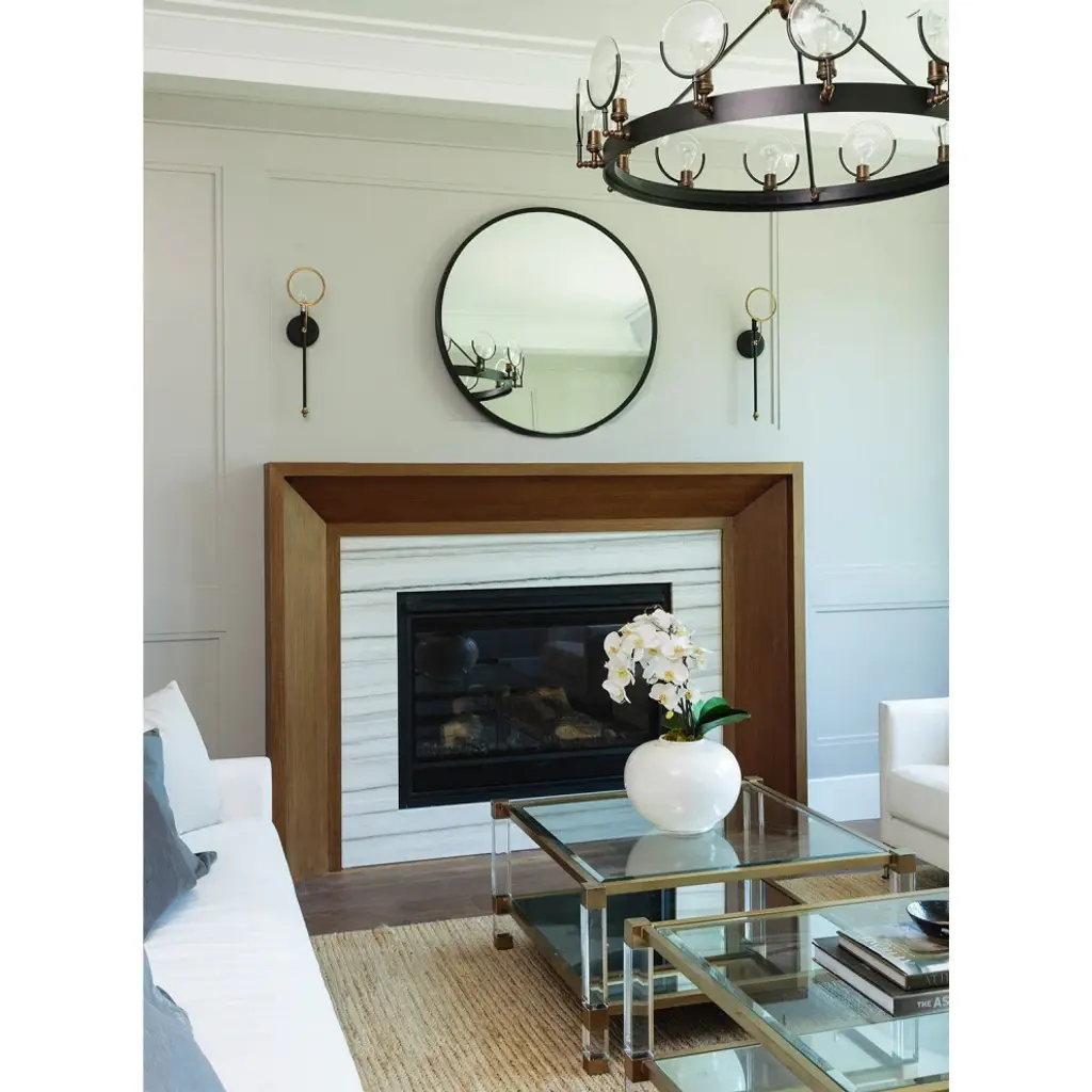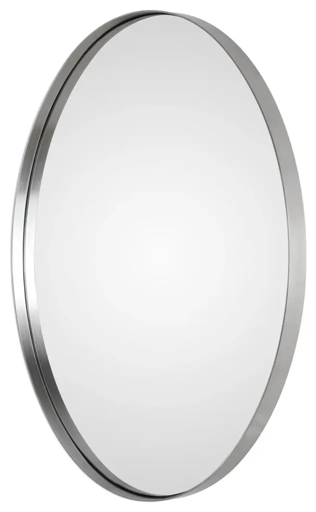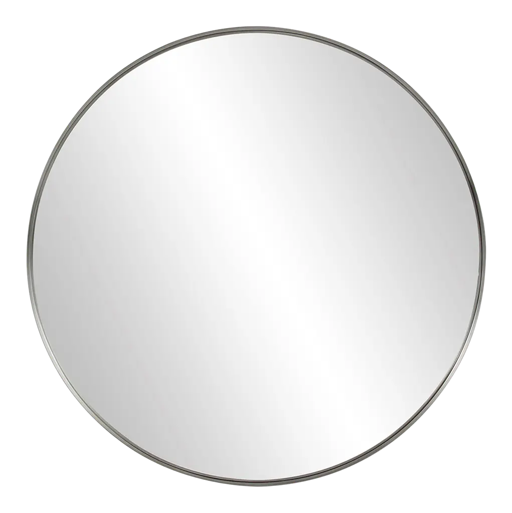 This simple yet classic round iron mirror is made from hand welded polished stainless steel mirror. Non-beveled center mirror. Cleat hardware provided. Available in burnished brass, stainless steel or black nickel.