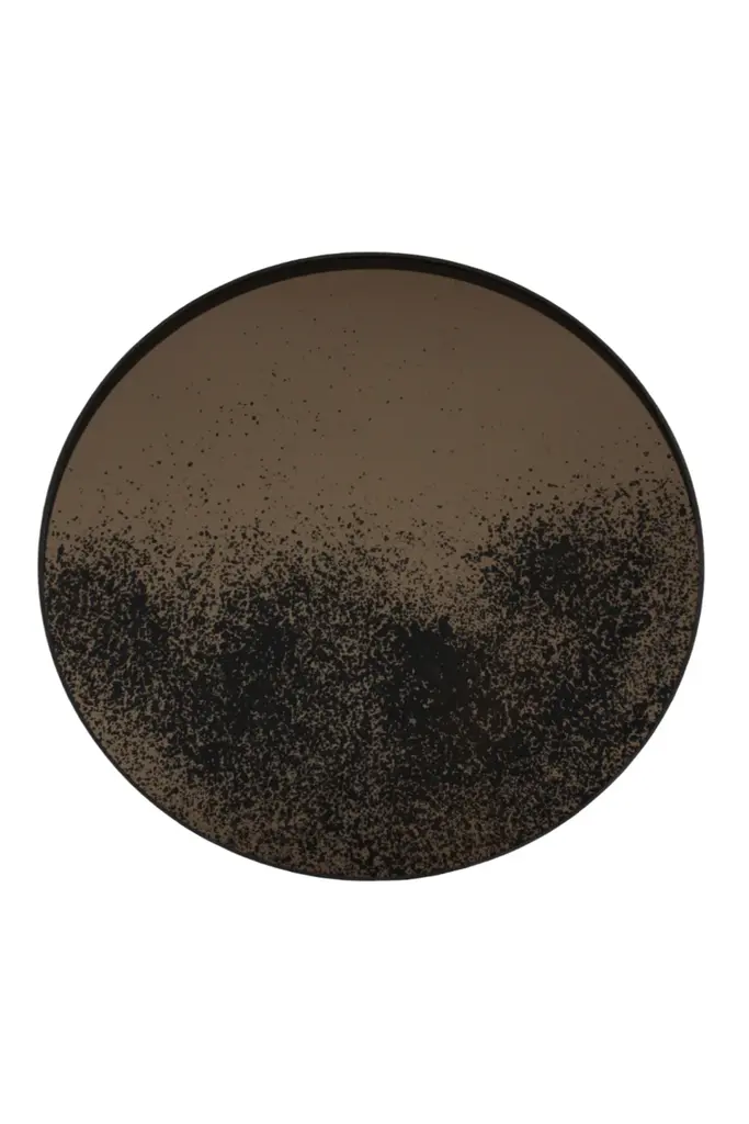 This heavily aged round mirror finds itself in the middle ground between functionality and art. Adorning the living room as wall art or serving a practical purpose in a bathroom or dressing, the unique piece gives the functional object an artful twist.