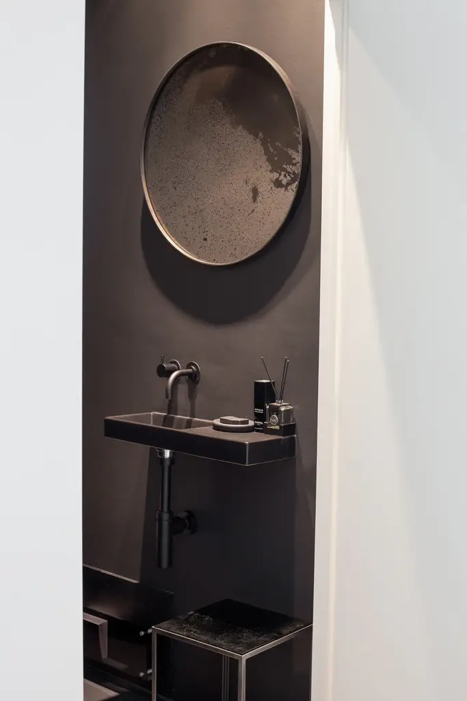 This heavily aged round mirror finds itself in the middle ground between functionality and art. Adorning the living room as wall art or serving a practical purpose in a bathroom or dressing, the unique piece gives the functional object an artful twist.