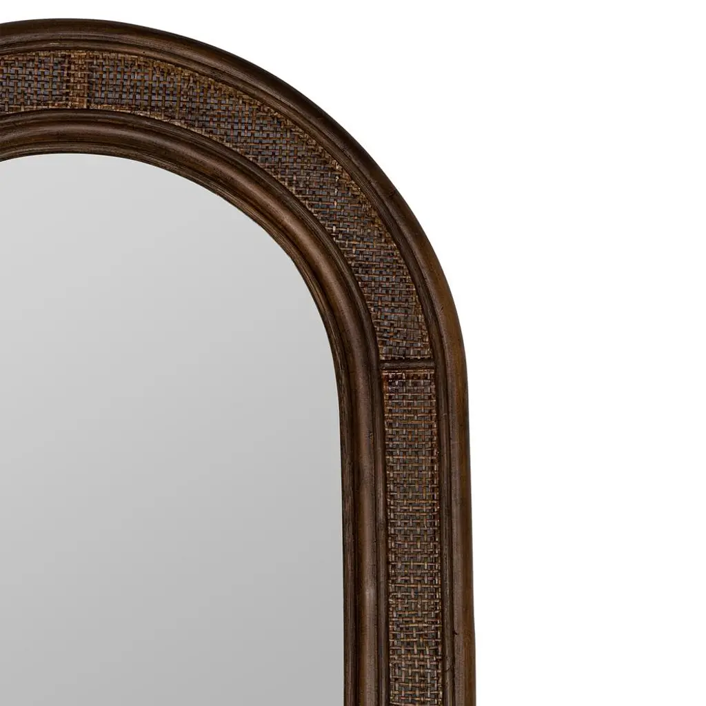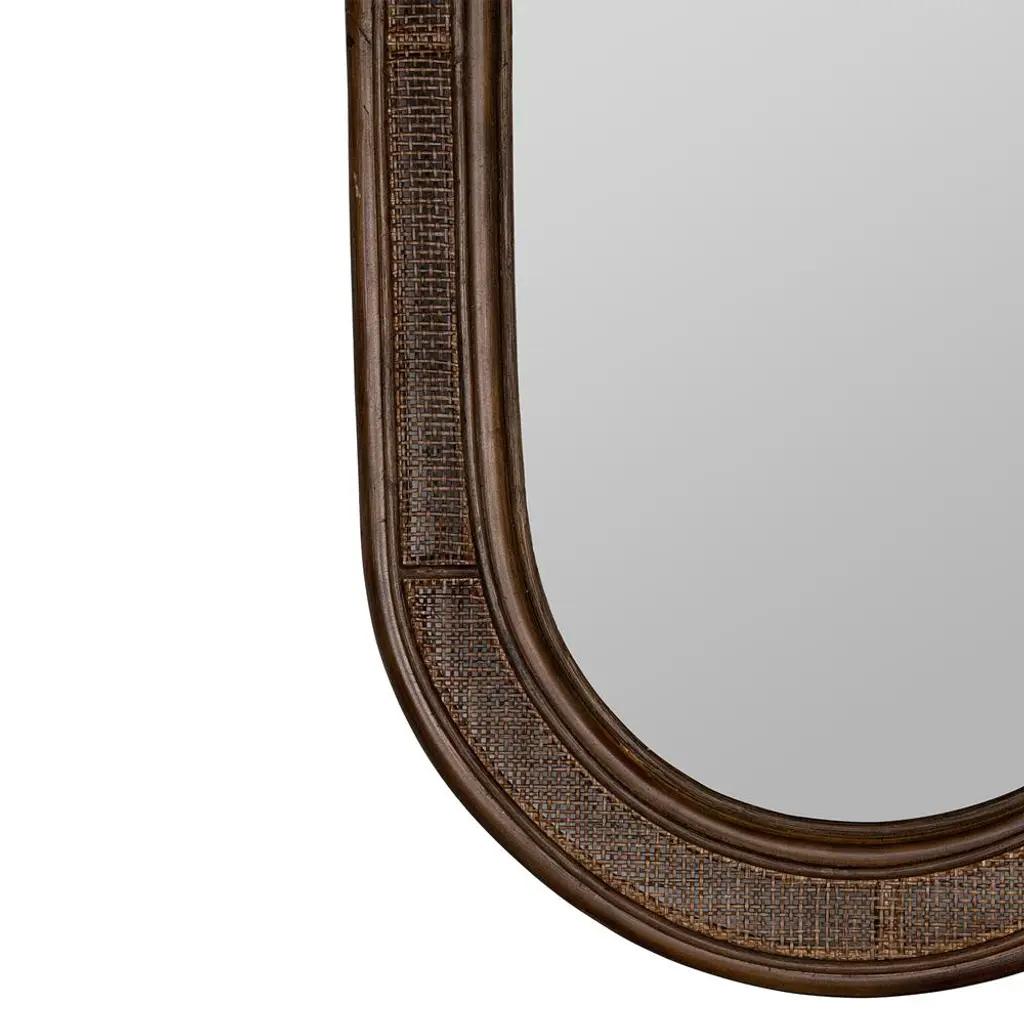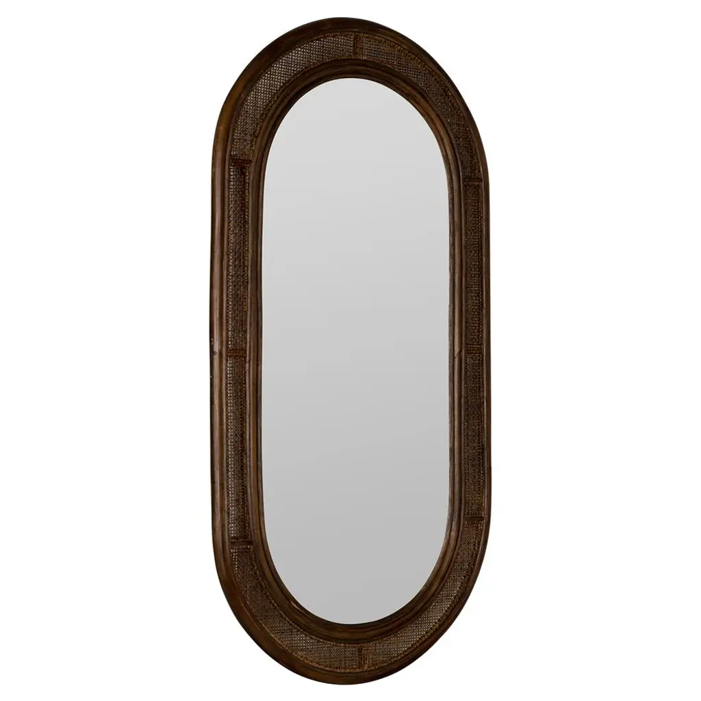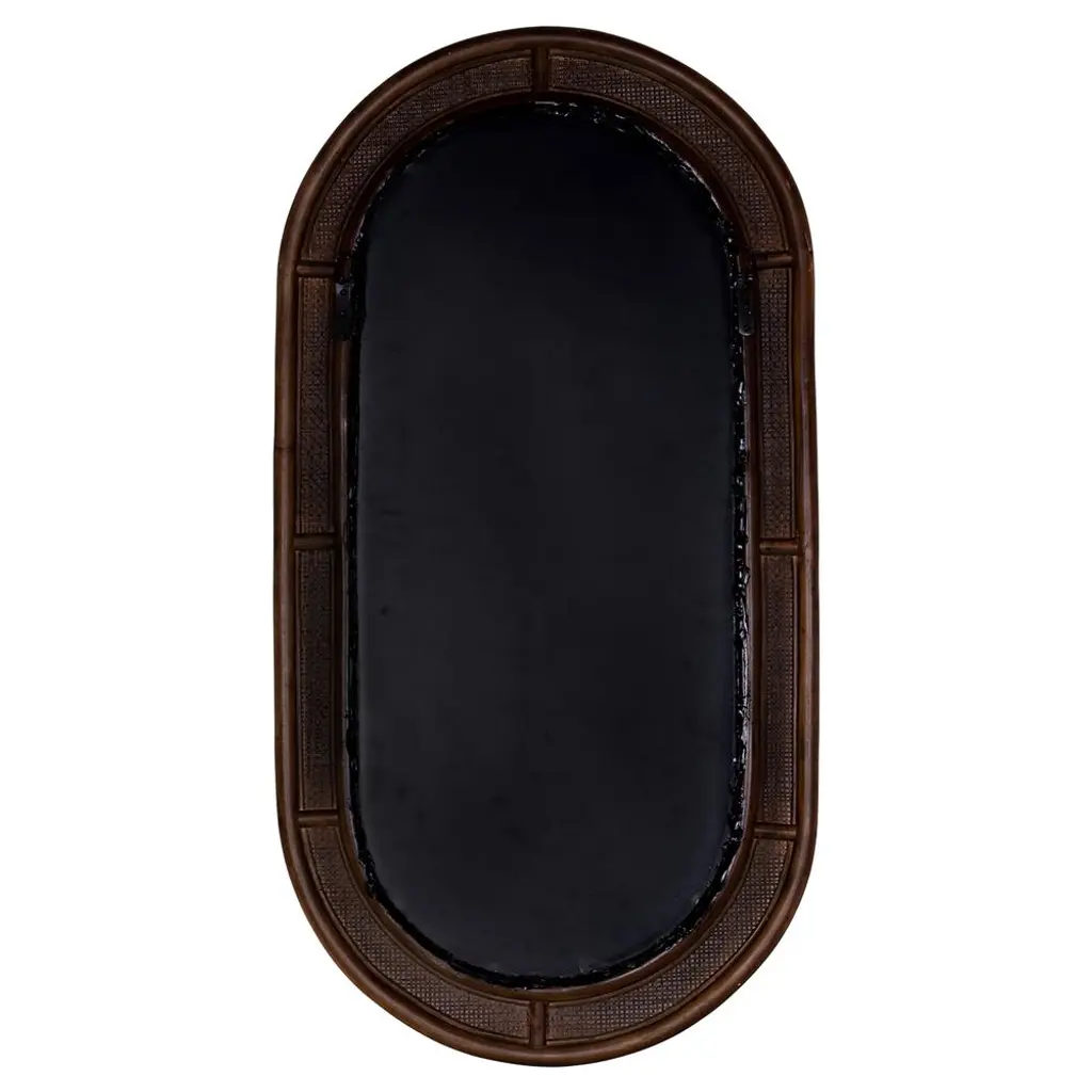 Rowan Mid Century Modern Dark Walnut Rattan Oval Wall Mirror