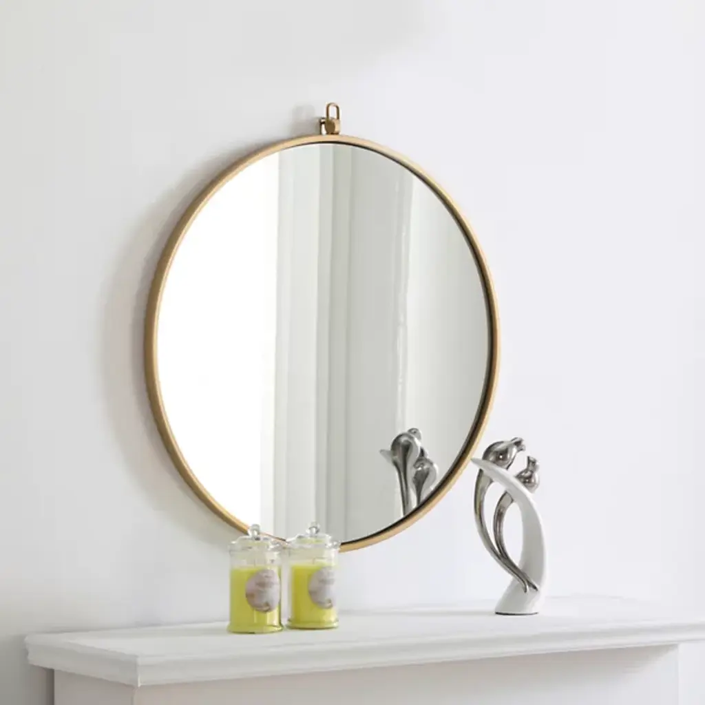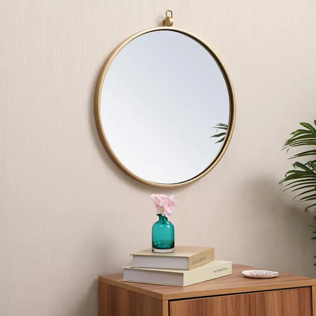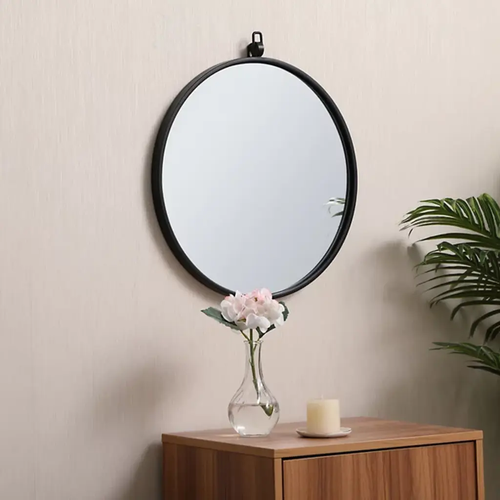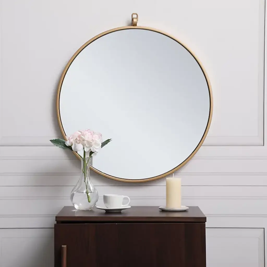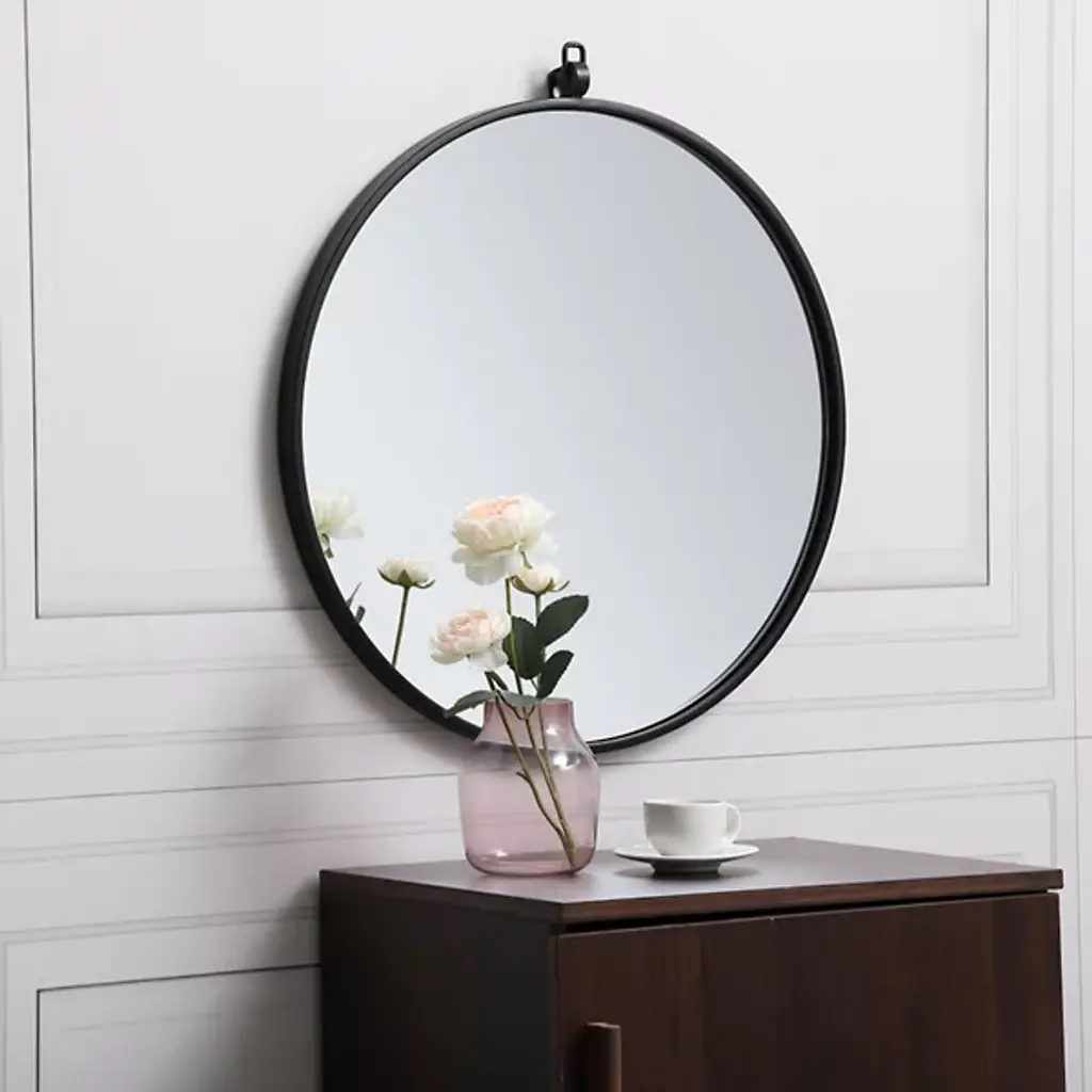 Add a touch of modern elegance to your home or office with the Rowan Round Wall Mirror with Decorative Hook from Elegant Lighting in a subtly antiqued silver finish. Its thin, rounded metal edges and deep profile showcase a sleek, minimalist design. For secure hanging, a sturdy metal hanger ring is welded to the back, ensuring easy installation and enhanced safety.