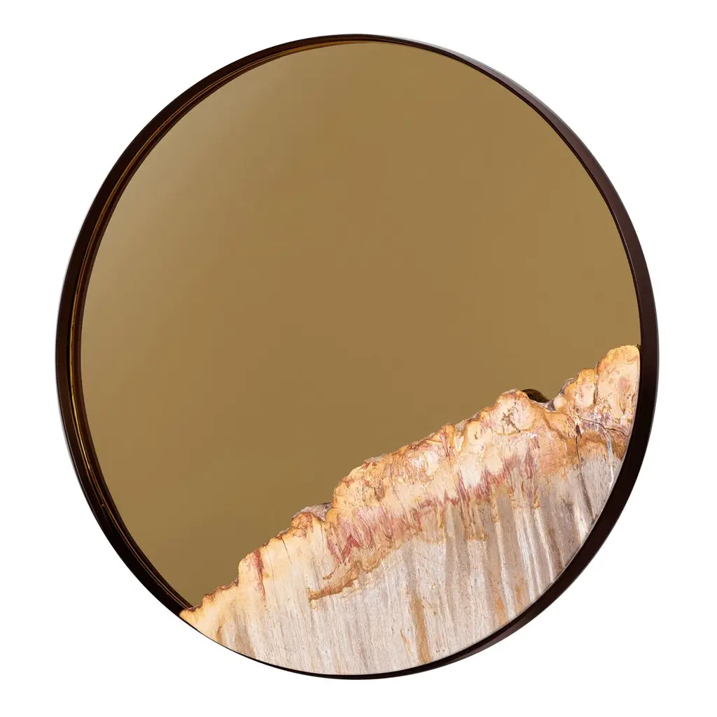 Draw the eye with the petrified wood accented Darby Round Mirror. The mirror is available in several sizes and pairings.