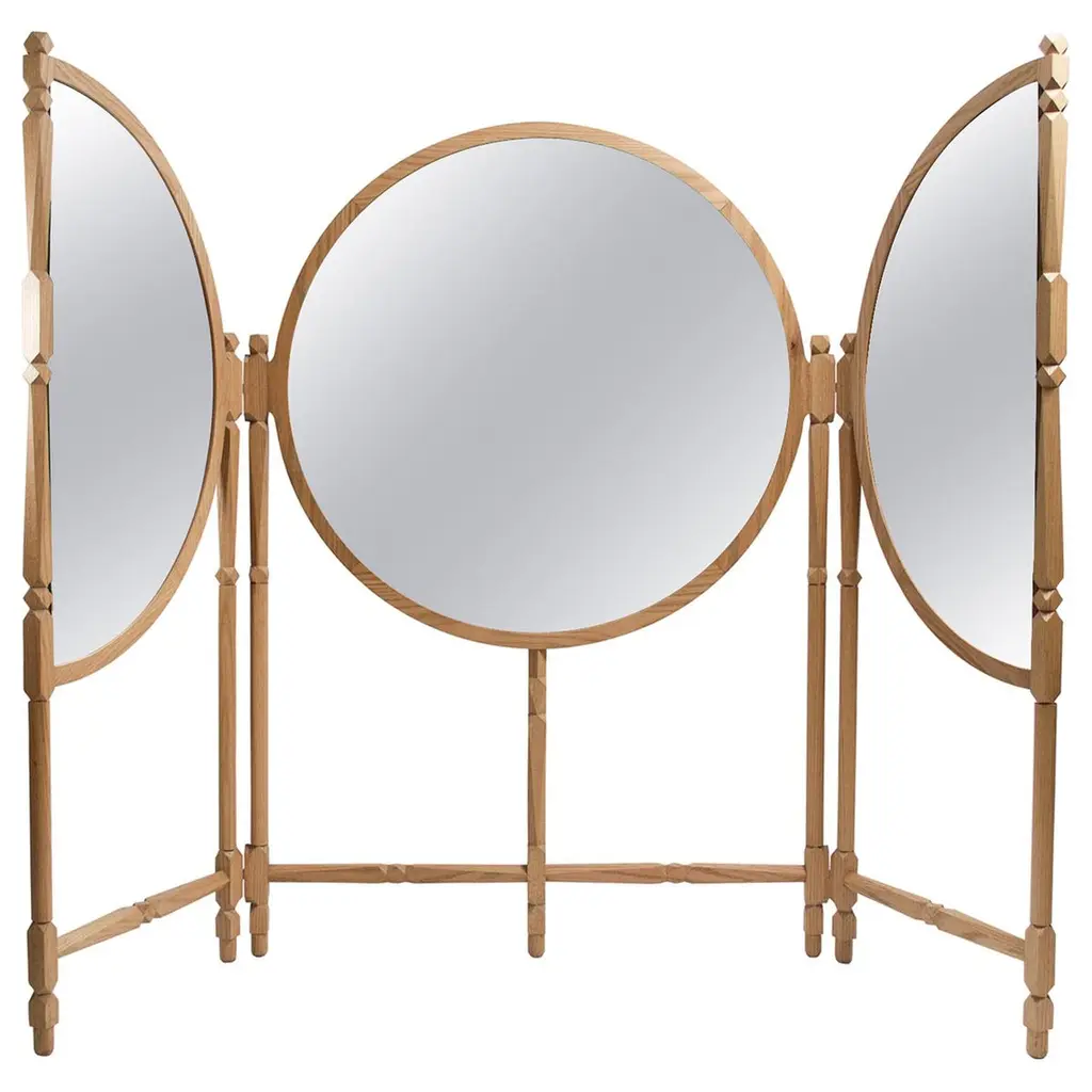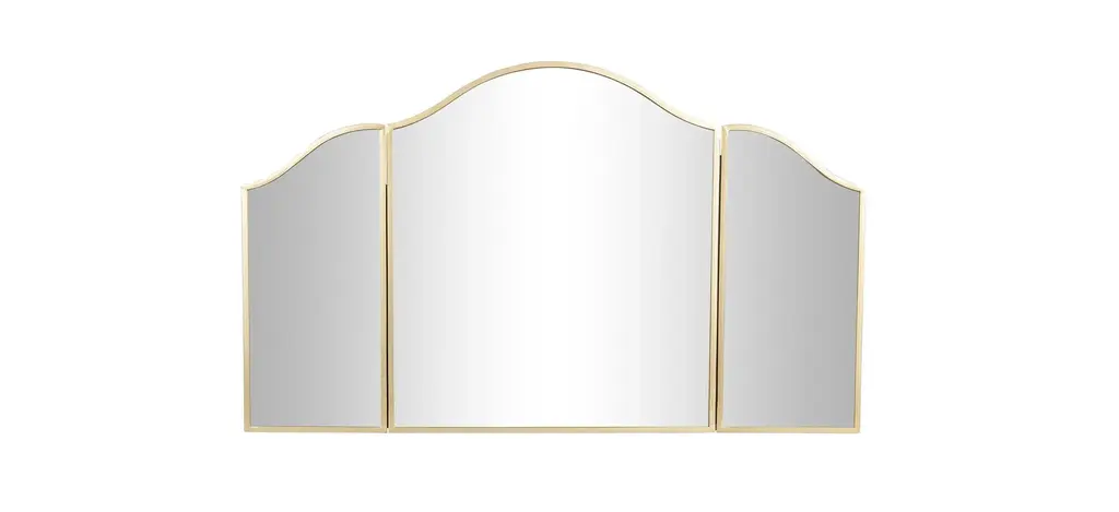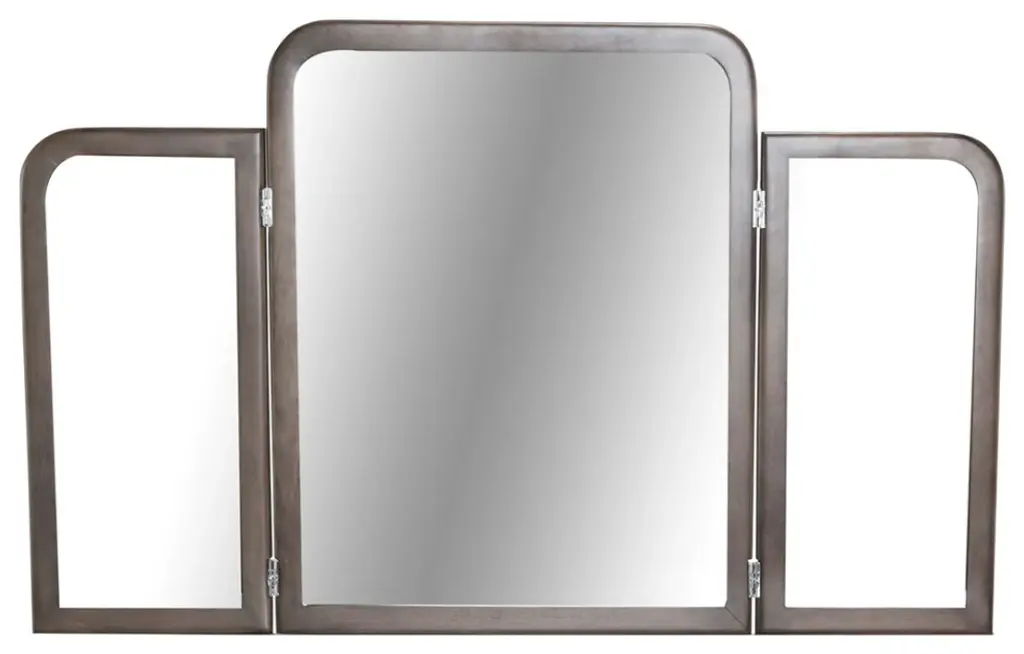Get your best angle with the tri-fold Roxbury Park Vanity Mirror! Perfect for any hair and makeup routine, this mirror delivers a glamorous style you''ll love forever.Wood frame is made with an Ash veneer in a Slate finishSide panels are hinged and can be adjustedBeveled glass mirrorMirror designed to sit on top of the Vanity and includes a wall mount bracket for stabilizationProduct Dimensions: 38"H x 48"W x 1.50"D