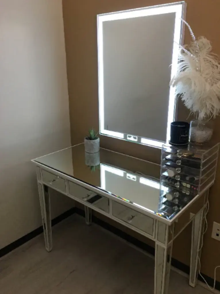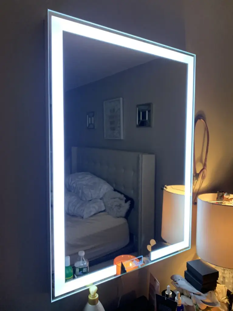 Impressions Vanity''s Royale Influence vanity mirror is a high grade, polished mirror that will show your best self in perfect lighting. It is designed for horizontal orientation. Adjust the brightness to your ideal setting. The built in touch sensor provides warm, cool, and natural light options. The LED lights can switch between cool, warm and natural light. This makeup mirror has a built in LED light strip with adjustable brightness. To turn the light on or off and adjust your perfect light simply press and hold the top touch sensor in the mirror. This high grade, polished mirror is protected by the surrounding frame construction. The mirror comes with hanging clips as well as wall hardware and screws to position it vertically.Features:LIGHTED MIRROR: This vanity mirror is designed for portrait orientation that provides a perfectly even studio quality environment and feels special when you put a on your makeupPERFECT LIGHTING: This makeup mirror has a built in LED light strip with adjustable brightness. To turn the light on or off and adjust your perfect light simply press and hold the top touch sensor in the mirrorEASY TO INSTALL: This high grade, the polished mirror is protected by the surrounding frame construction. The mirror comes with hanging clips as well as wall hardware and screws to position it verticallyPERFECT GIFT: If you are looking for a gift, this royal influence vanity mirror is a perfect gift for mother, sister, wife, girlfriend, makeup artist, etc. mothers day, Christmas, anniversaries or another special occasion