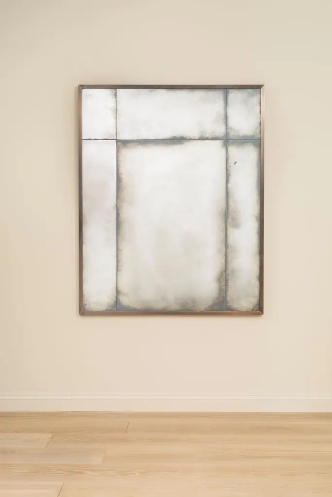 A signature piece for Rupert Bevan, our elegant Art Deco Overmantel Mirror features a patinated brass angle frame with lightly antiqued mirror glass panels.Handcrafted in our Shropshire Workshops, each mirror is made with hidden split batten wall fixings.