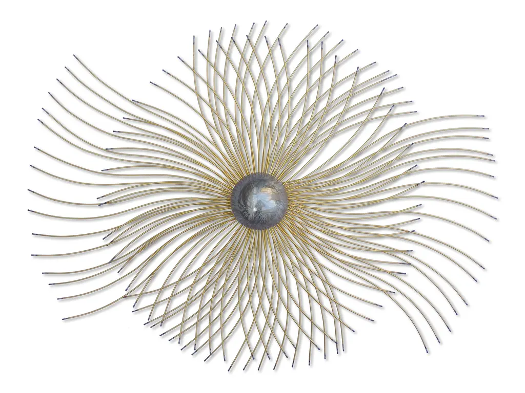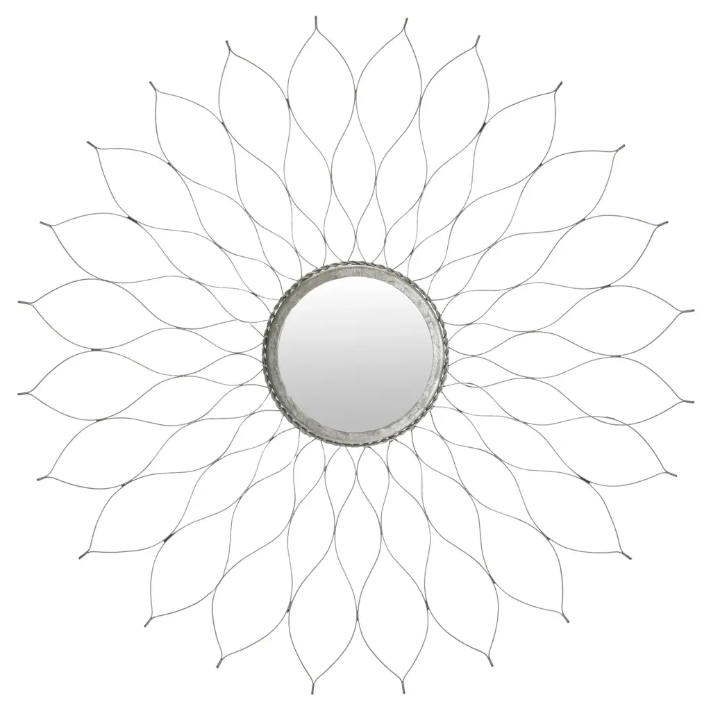 Lightly wrought-iron petals gently spread out around a mirrored disc in the Flower Mirror. The delicate styling give this wallflower a airy allure. Dust with a soft, dry cloth. Do not use abrasive cleaner. To clean mirror, spray a small amount of glass cleaner onto a lint-free cloth and wipe mirror clean.
