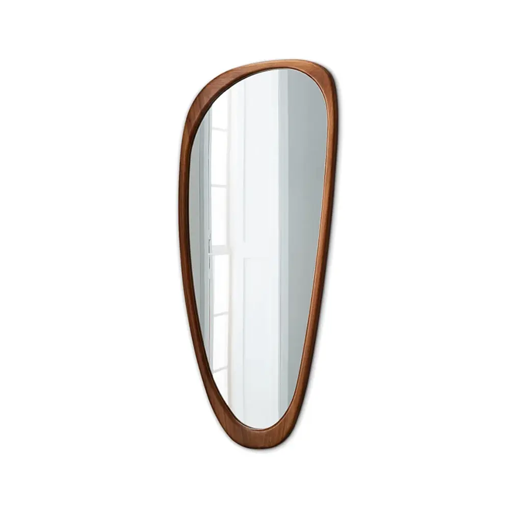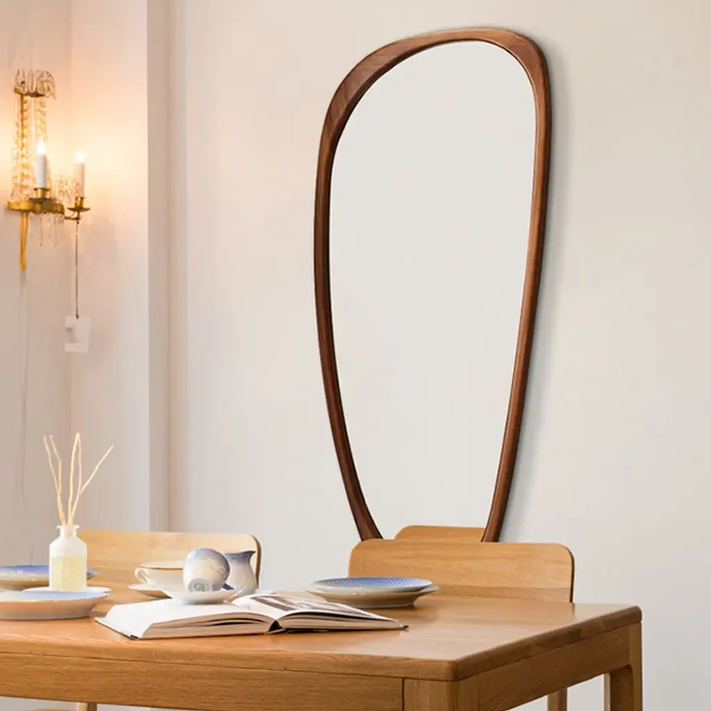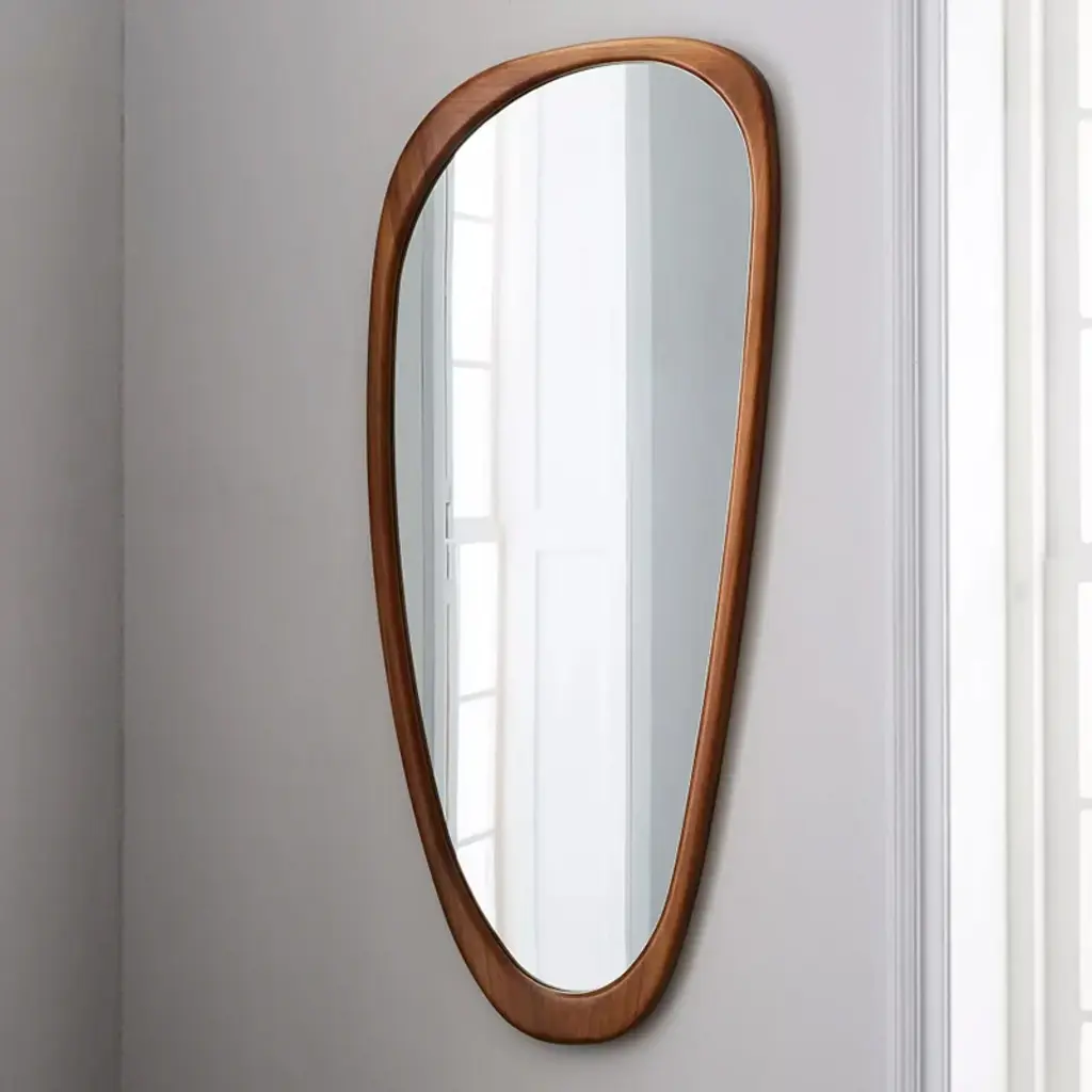Rustic Asymmetrical Mirror Full Length Wall Mirror Wood Frame In Walnut